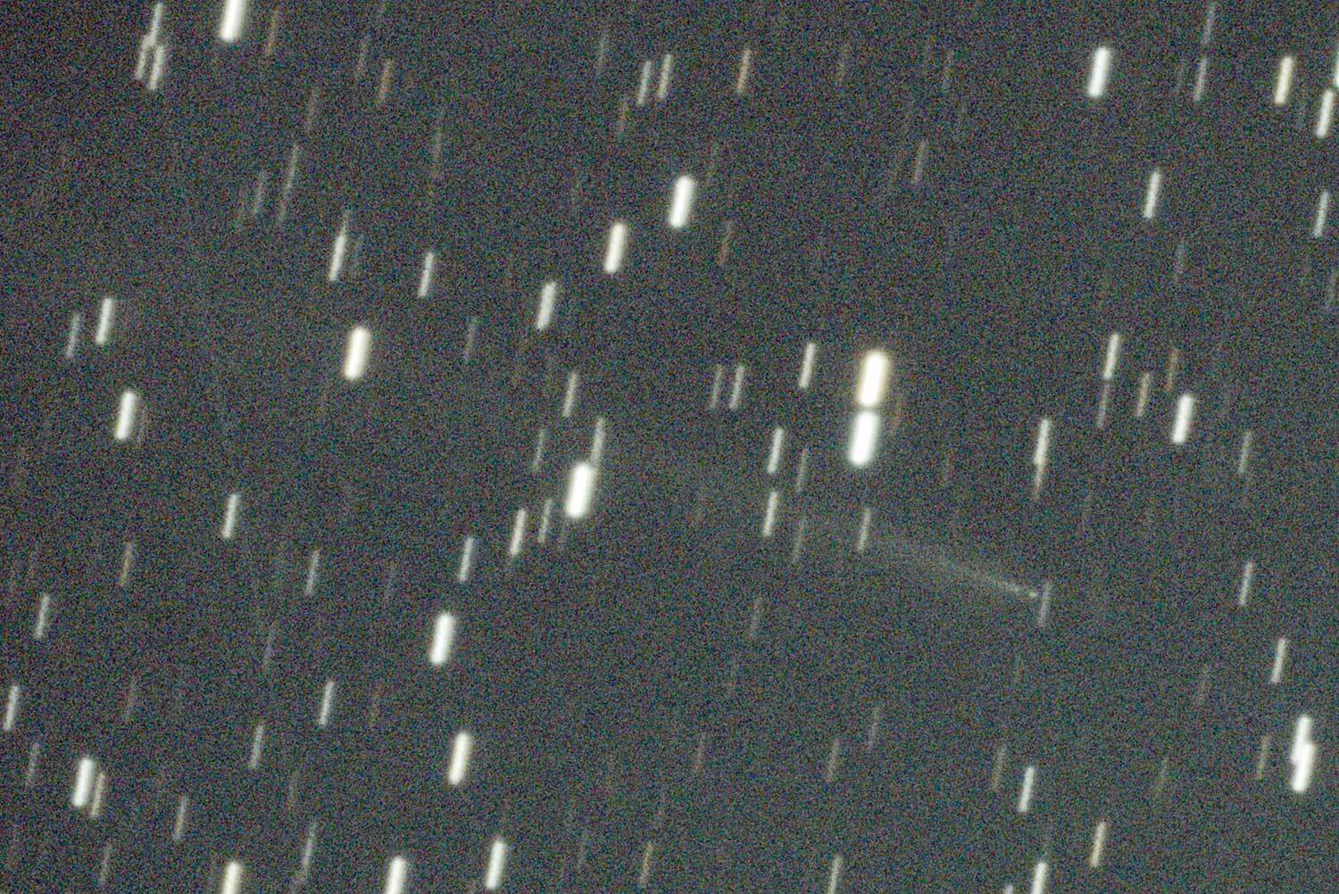 自宅にて撮影しました。180s15枚から強調トリミングしています。月が無くなり見やすくなりました。画像で尾の長さは約12分、本体とB・C核の離隔は約13秒でした。