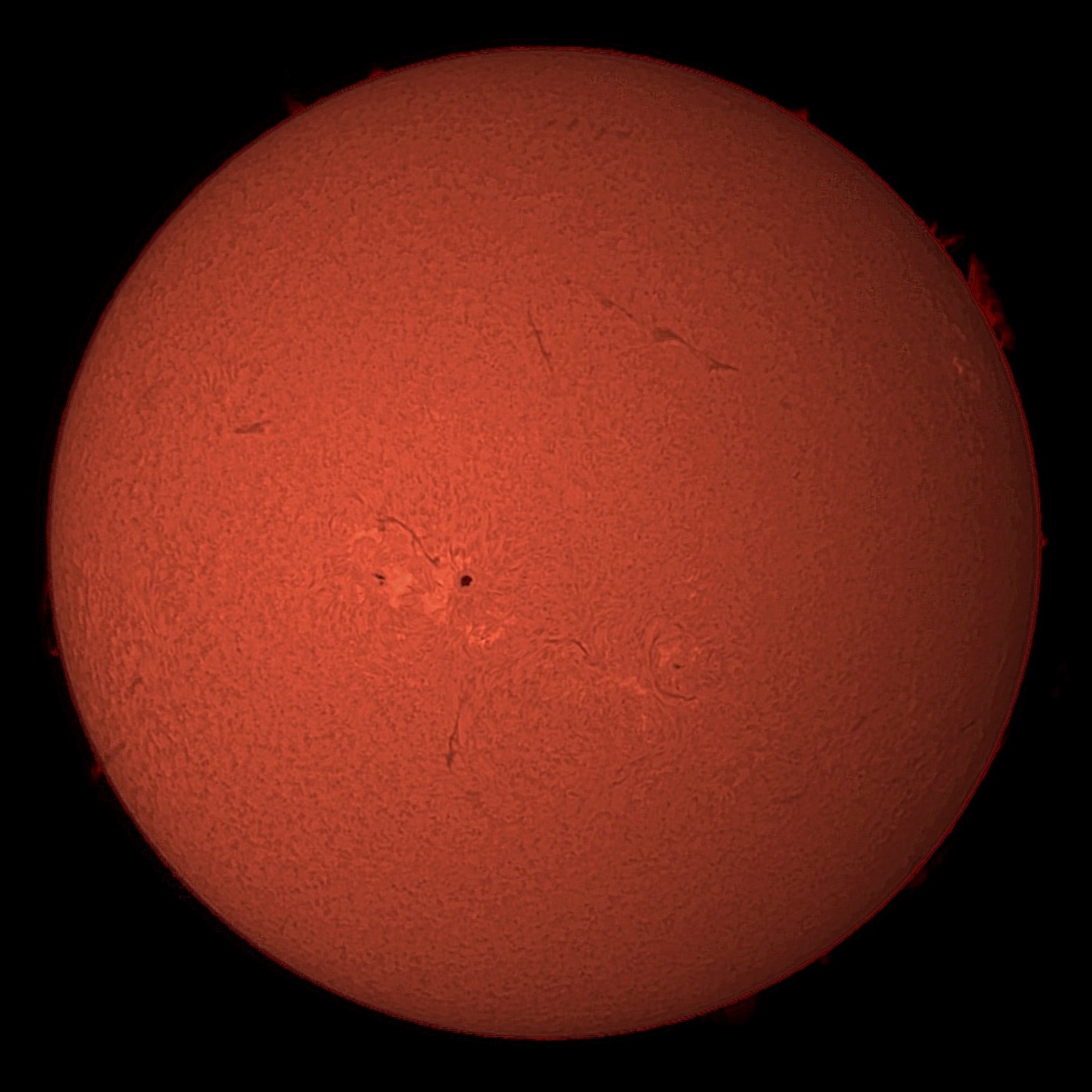 AutoStakkert! 4.0.13(スタック(1000 x 0.05) + Sharpened)、Win フォト(解像度変更)、SI10(太陽Hα画像補正)