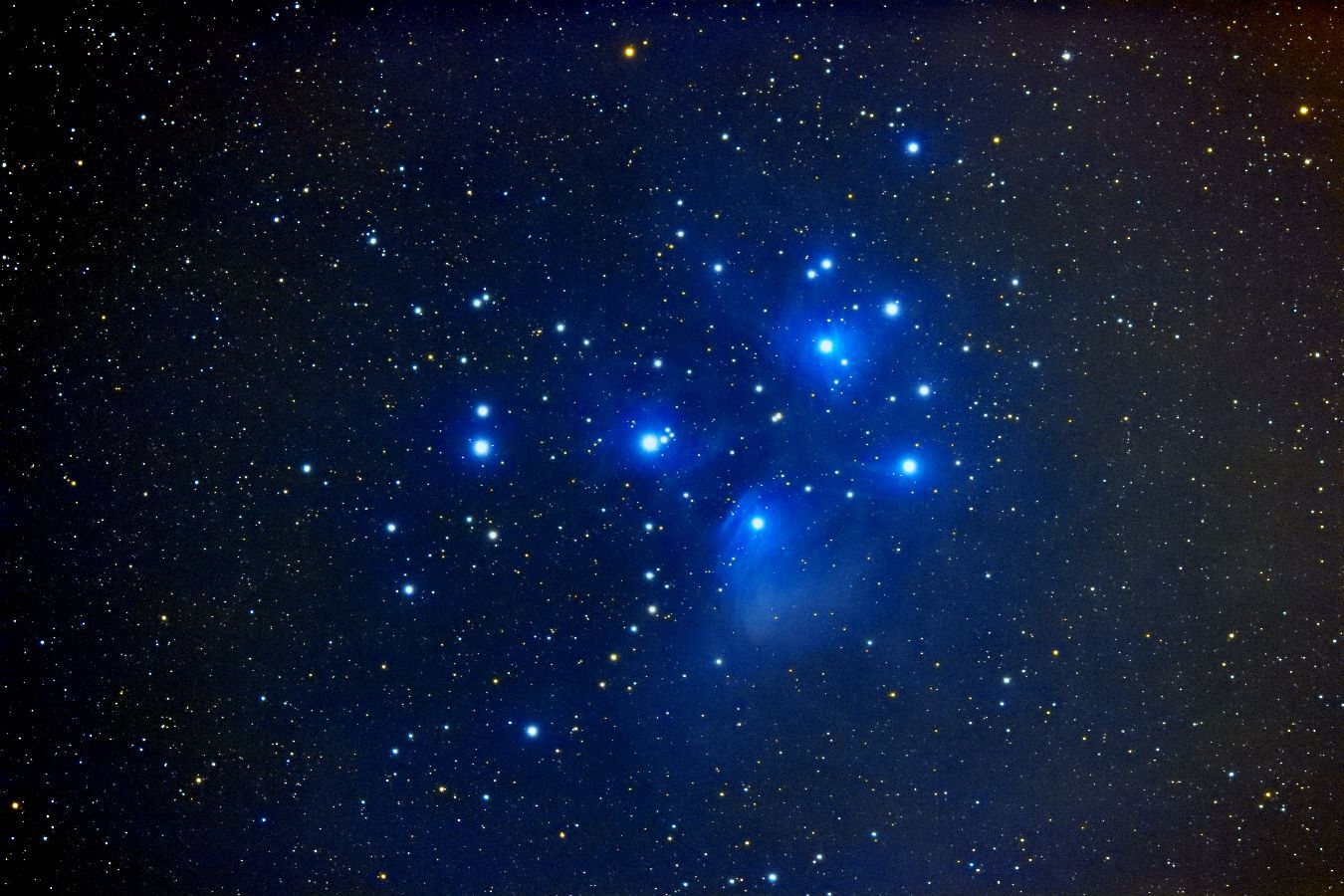 おうし座の散開星団M45(Mel.22)プレヤデス星団です。青い反射星雲の拡がりを意識して処理しました。(片山 徹)