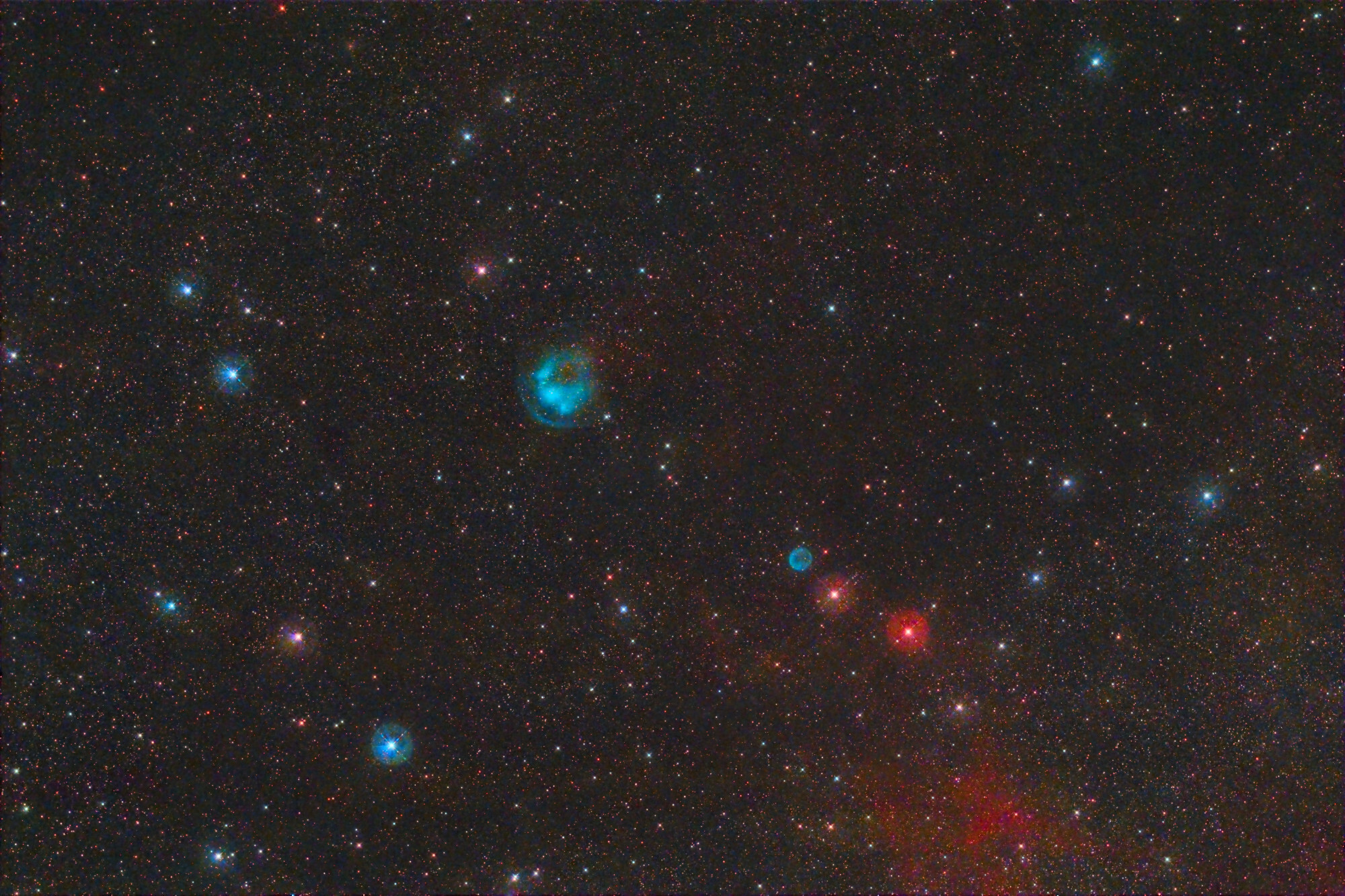 PixInsight(PI)でバイアス・フラット補正、コンポジット、RGB変換、2×drizzle、PIでBlurXTerminator、NoiseXTerminator、ストレッチ(MAS)、StarXTerminatorで星雲強調処理、仕上げはAffinity Photo2を利用