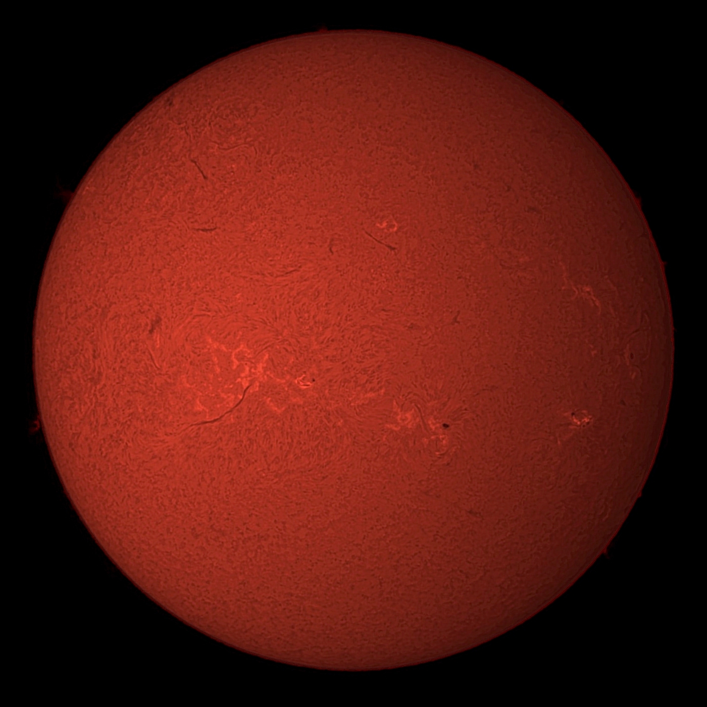 AutoStakkert! 4.0.13(スタック(1000 x 0.05) + Sharpened)、Win フォト(解像度変更)、SI10(太陽Hα画像補正)。