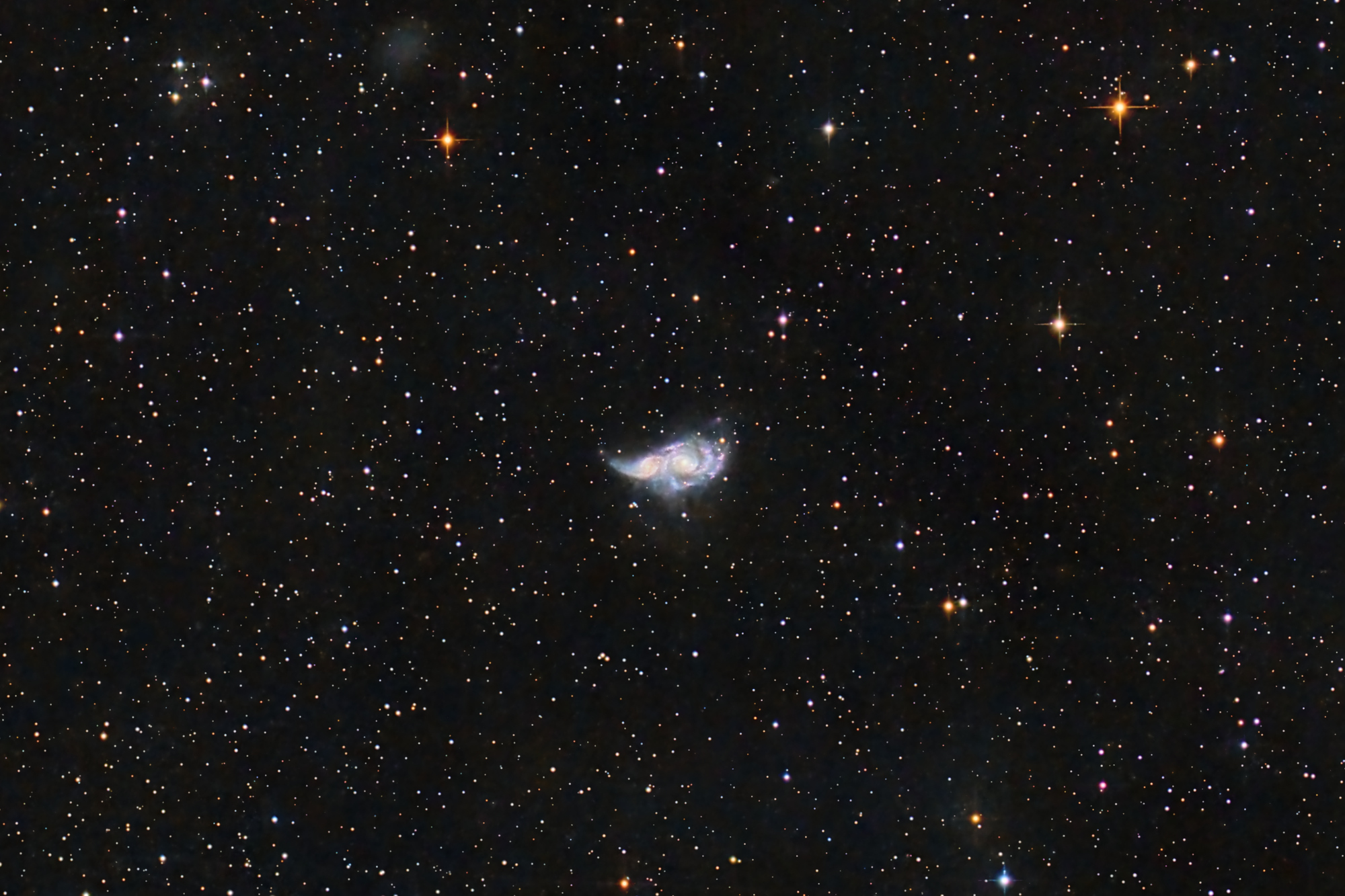 PixInsight(PI)でバイアス・フラット補正、コンポジット、RGB変換、2×drizzle、PIでBlurXTerminator、NoiseXTerminator、ストレッチ(MAS)、StarXTerminatorで星雲強調処理、仕上げはAffinity Photo2を利用