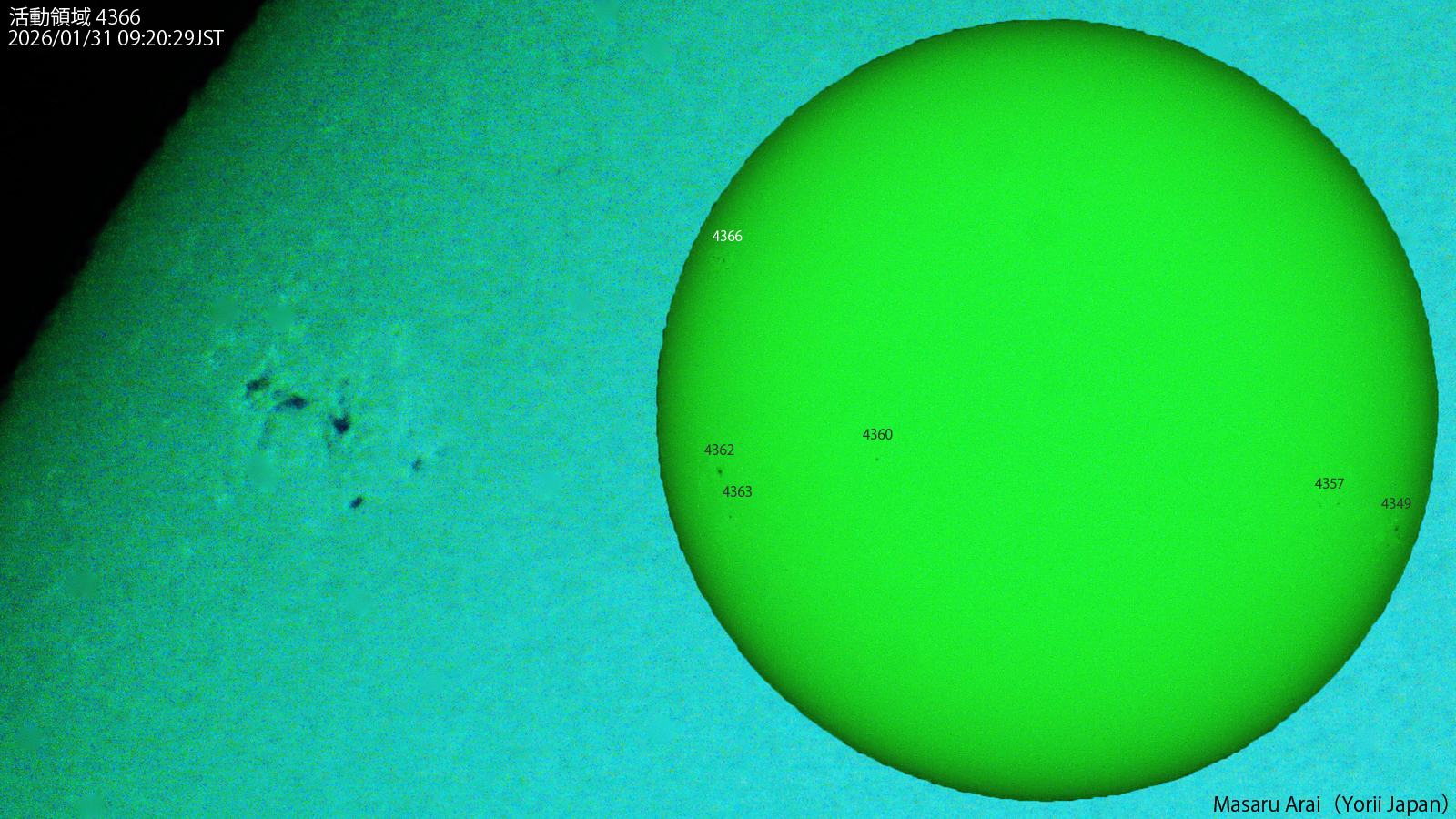 SE120L+DMC-GH1よる 4366( Dai/--- ) です。 NICT情報:活動領域4366などでCクラスフレアが数回発生し、最大のものは、活動領域4366で30日19時35分JSTに発生したC1.9フレアでした。