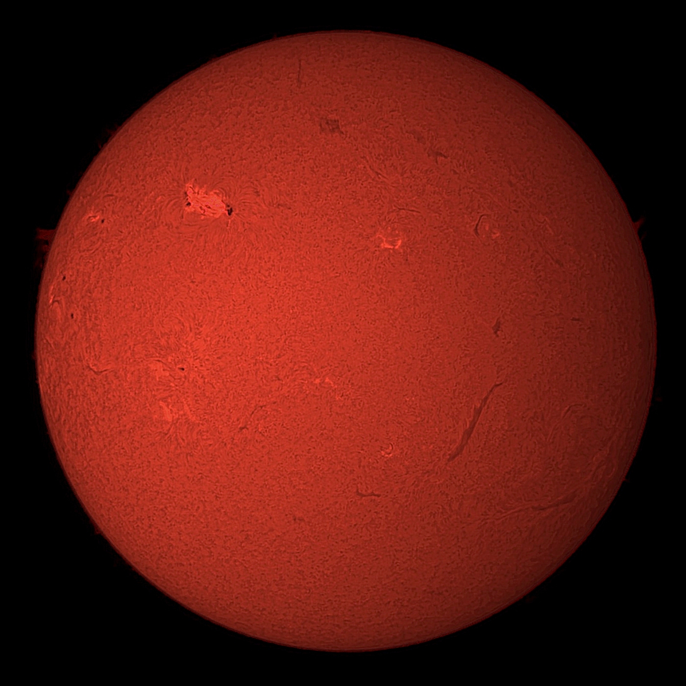 AutoStakkert! 4.0.13(スタック(1000 x 0.05) + Sharpened)、Win フォト(解像度変更)、SI10(太陽Hα画像補正)。