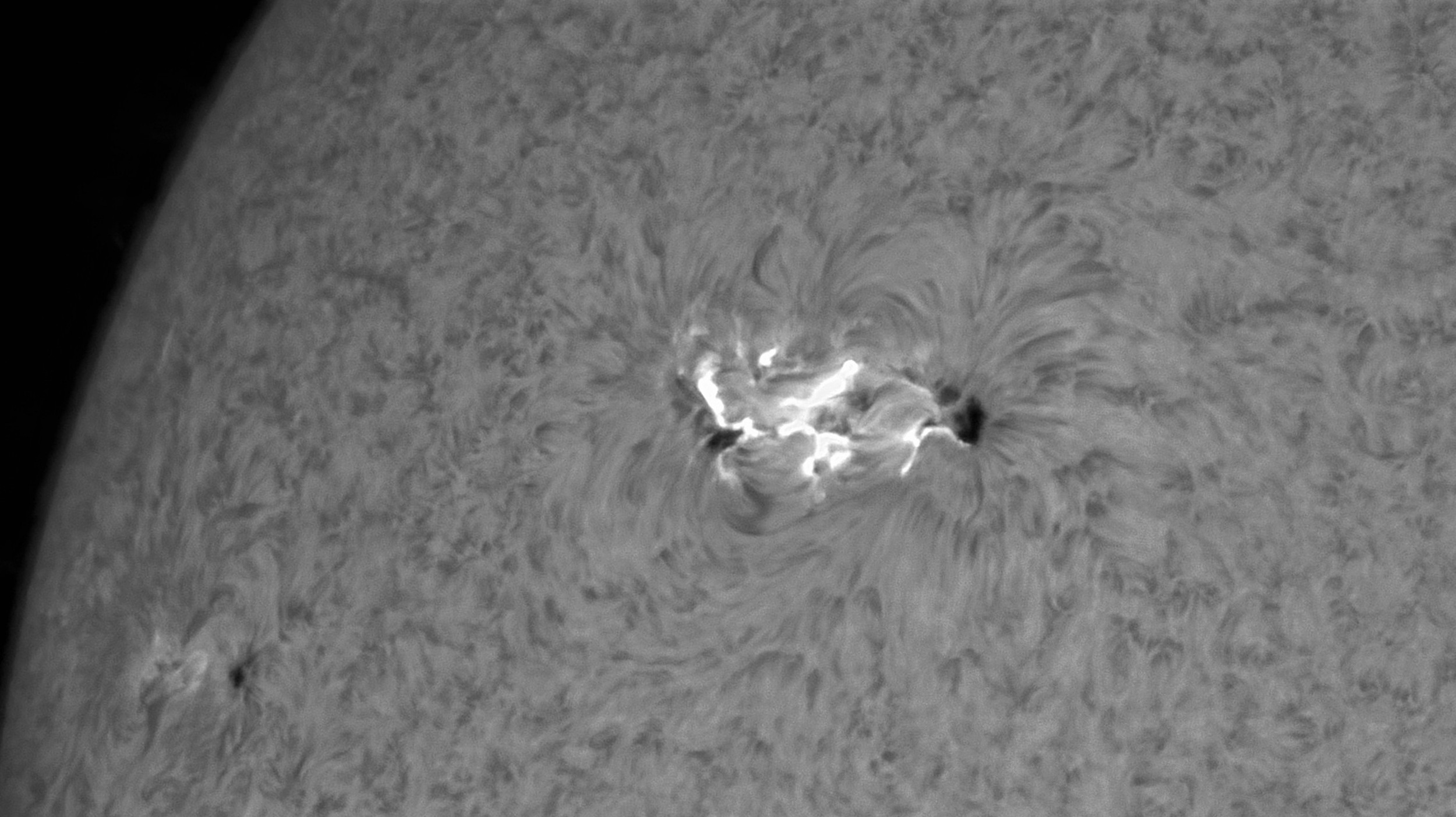 4366では、今朝8:57(JST)最大 X8.1、9:36最大 X2.8の大規模フレアが発生しました。 (露出を下げて暗めに撮影。上空気流が不安定で、細部は描写できず)