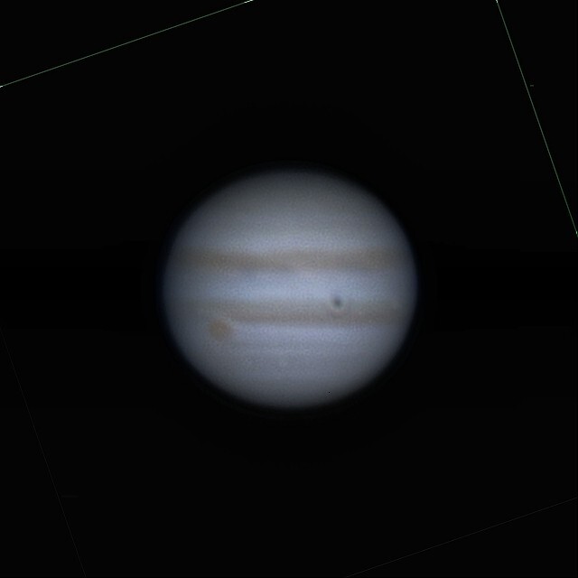 上空の気流が安定していたようです。大赤斑とイオが写っています。 撮影時間:19時54分24秒~20時00分57秒 シーイング(3/5)、透明度(4/5)