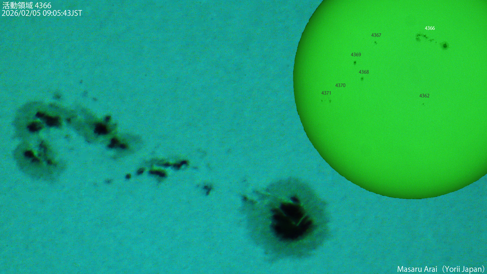 SE120L+DMC-GH1よる 4366( Fkc/Fkc ) です。 NICT情報:活動領域4366で4日21時13分UTにX4.2フレアが発生しました。