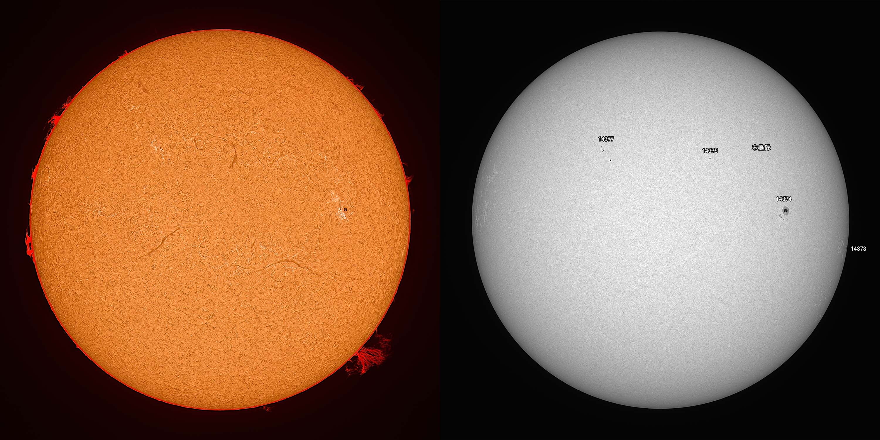 光球面:FireCapture、ROI 3600x2400、Gain 100、1.85msec x1000、撮影時間 31秒/プロミネンス:FireCapture、ROI 3600x2400、Gain 300、1.85msec x1000、撮影時間 31秒