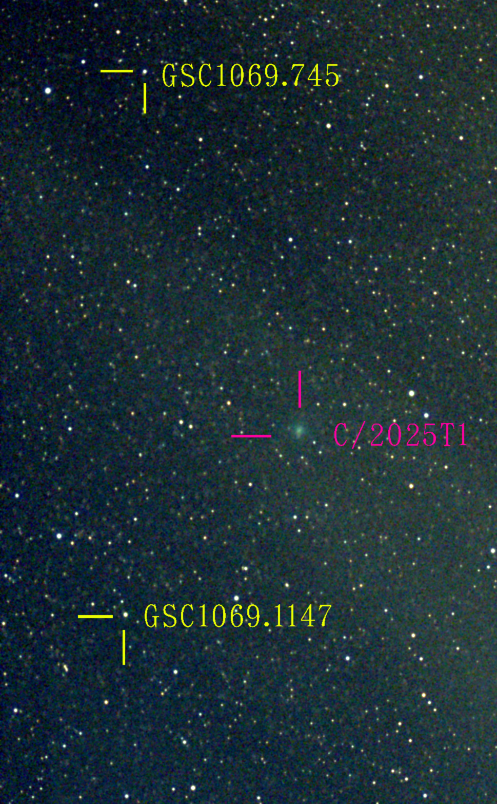 光害の影響が小さい場所、高山や高原で星を撮影をするという偏見は不要です。 光害でバックグラウンドが明るい都会の夜空で撮影した「彗星」です。 自宅ベランダから Seestar50 を使用して自動撮影しました。 これからは 都市部の ルーフガーデン や バルコニー から気軽に天体撮影をするのが流行になりそうです。 GSC1069.745 9.01等 GSC1069.1147 9.38等