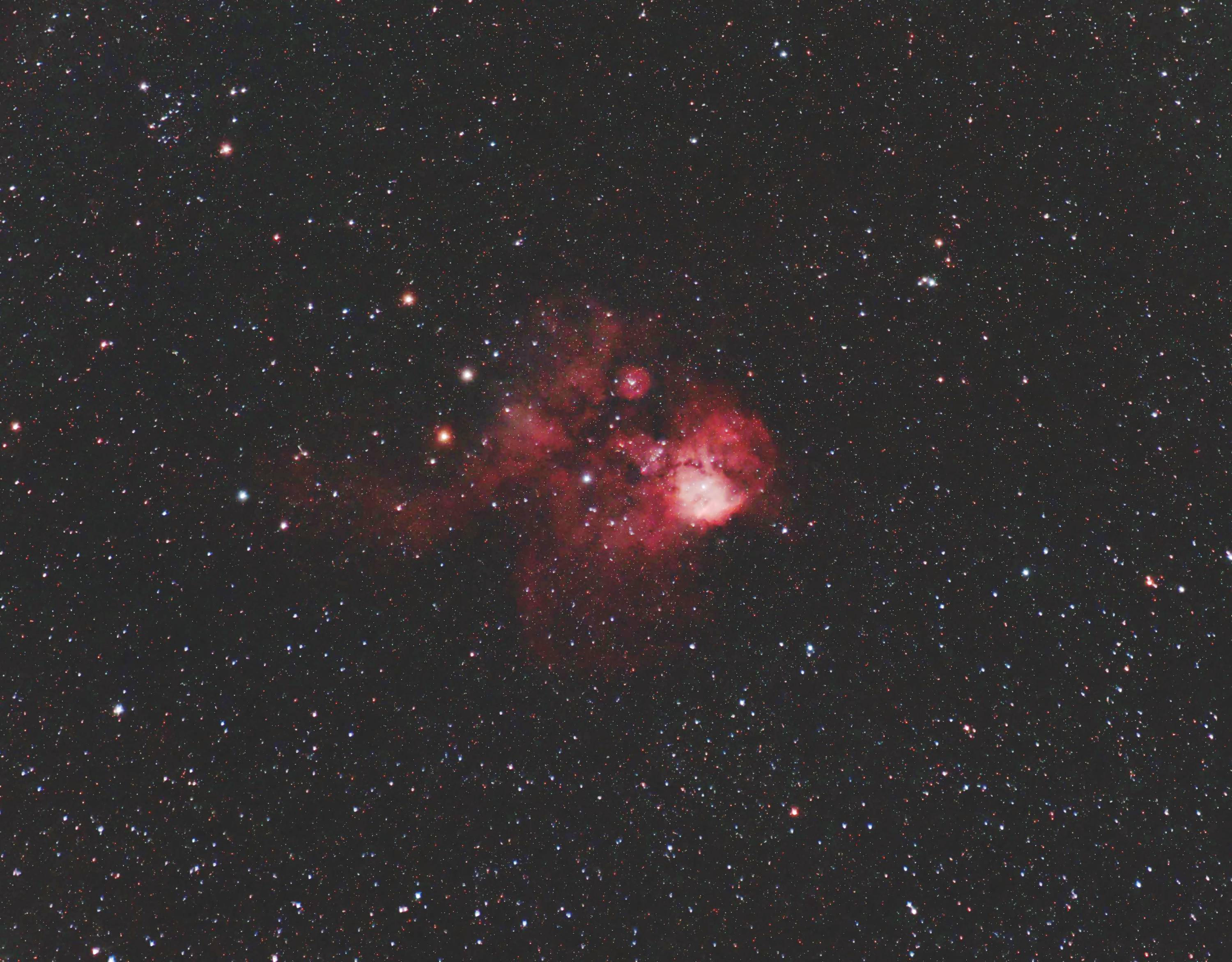 とも座のマンドリル星雲 NGC2467を400mm の150分露出で撮影しました。シリウスの下方にあり都心の光害に埋もれた難物ですが、透明度が良かったので挑戦しました。春霞が覆い始めていて今季最後の撮影のチャンスだったと思います