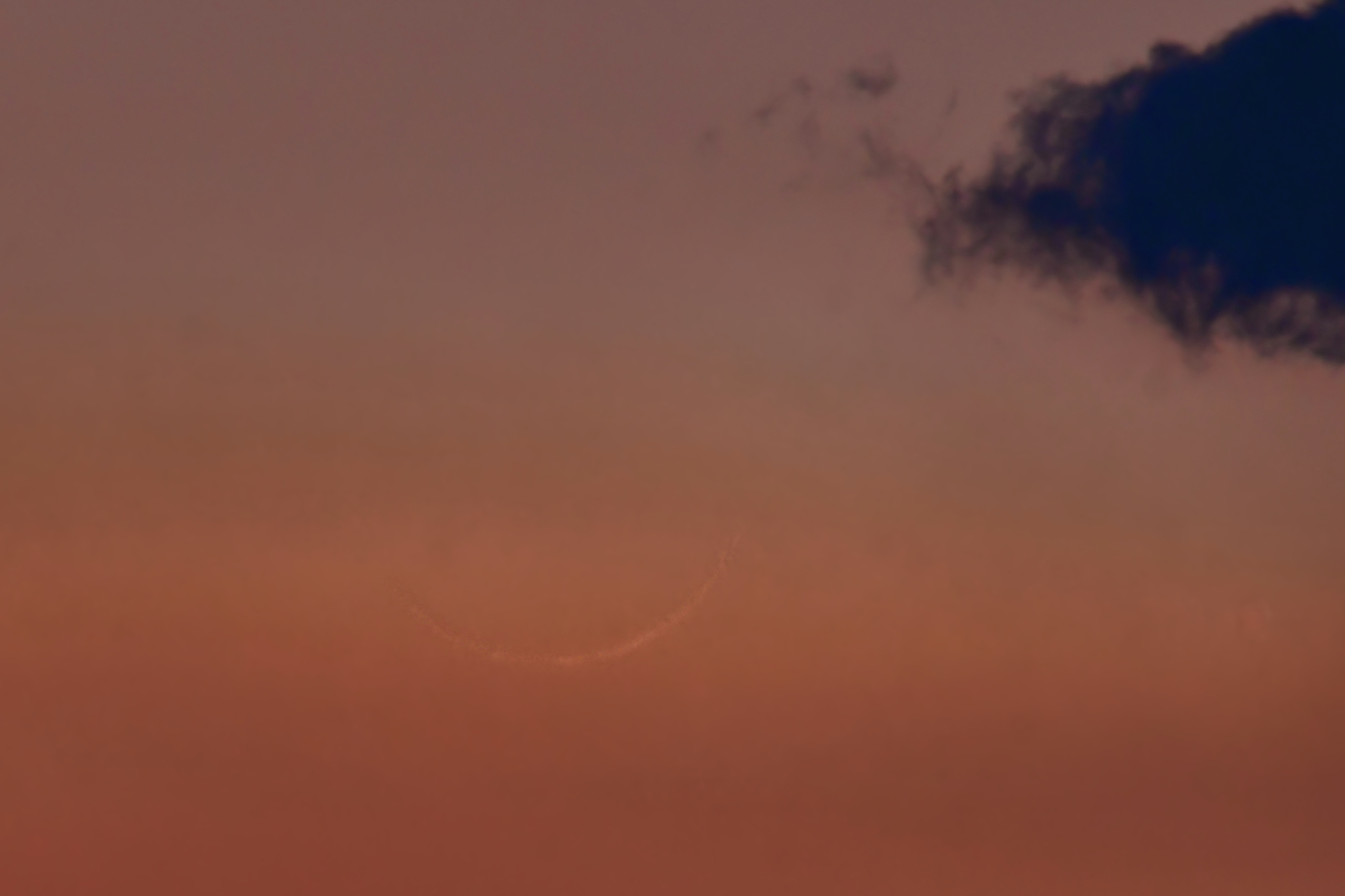 日没30分後、空はまだ明るく、月はとても淡かったです。 トーンカーブとコントラスト調整で見えるようにしてみましたが、私の力ではここまで…