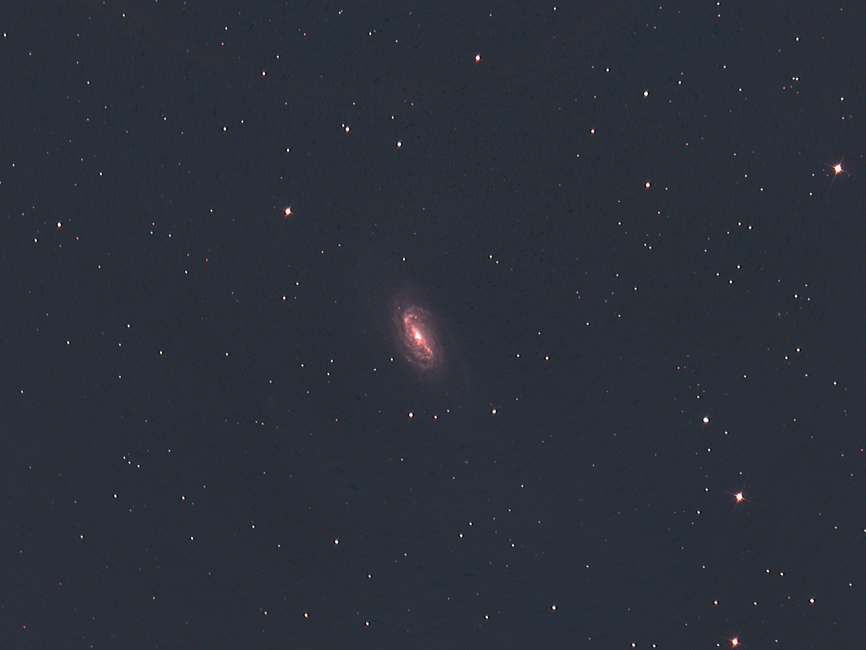 SE200NCR SV405CC CLSフィルター gain450 -20℃に冷却 30秒×231=1時間55分30秒 EQ6PRO赤道儀 75mmCCTVレンズ+ASI178MM、PHD2でオートガイド DSSでスタック。Sirilで色調補正、バックグラウンド補正、コントラスト調整。 横3000pixel相当にトリミング。 しし座の方角に約3000万光年離れた場所に位置する棒渦巻型銀河です。赤外域まで使用できるCLSフィルターを用いて撮像しましたが、色情報が単調で銀河本体の青味に欠ける画像となってしまいました。フィルターを変えてリベンジしてみたいです。