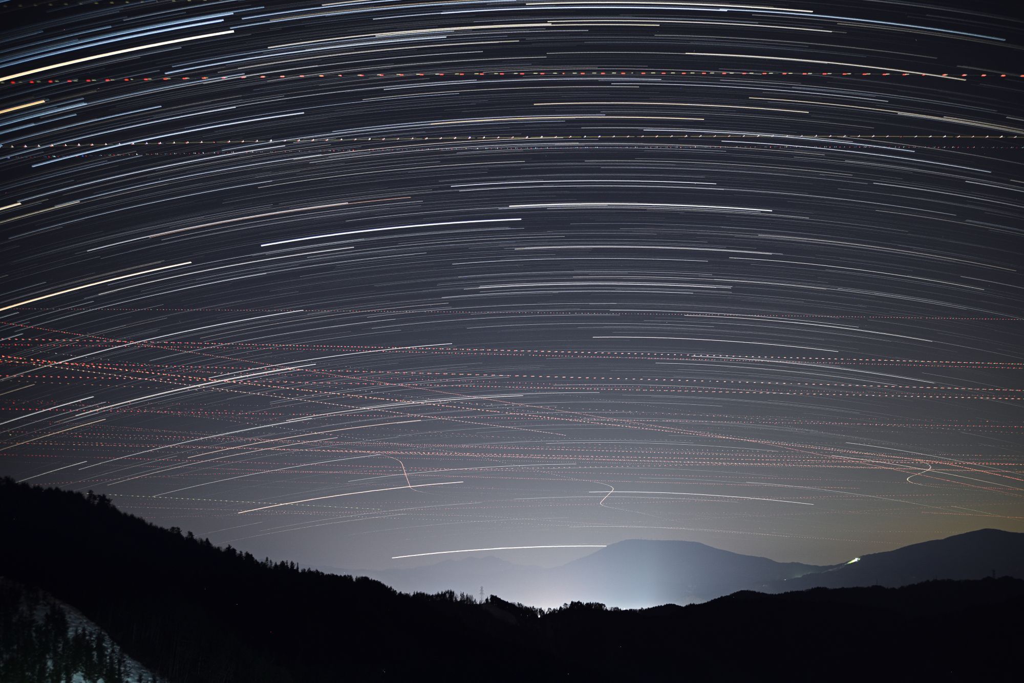 高山市街の地上光は眩しいが、ちょうどその方向にあるカノープスは肉眼でも確認できた。 航空機の軌跡と星の軌跡との共演?競演か。そろそろカノープスシーズンが終わる。