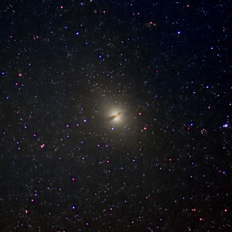 ケンタウルス座の銀河 NGC5128(CenA)です。短い焦点距離ですが銀河を包む縦長楕円形のシェルが写っています。(片山 徹)