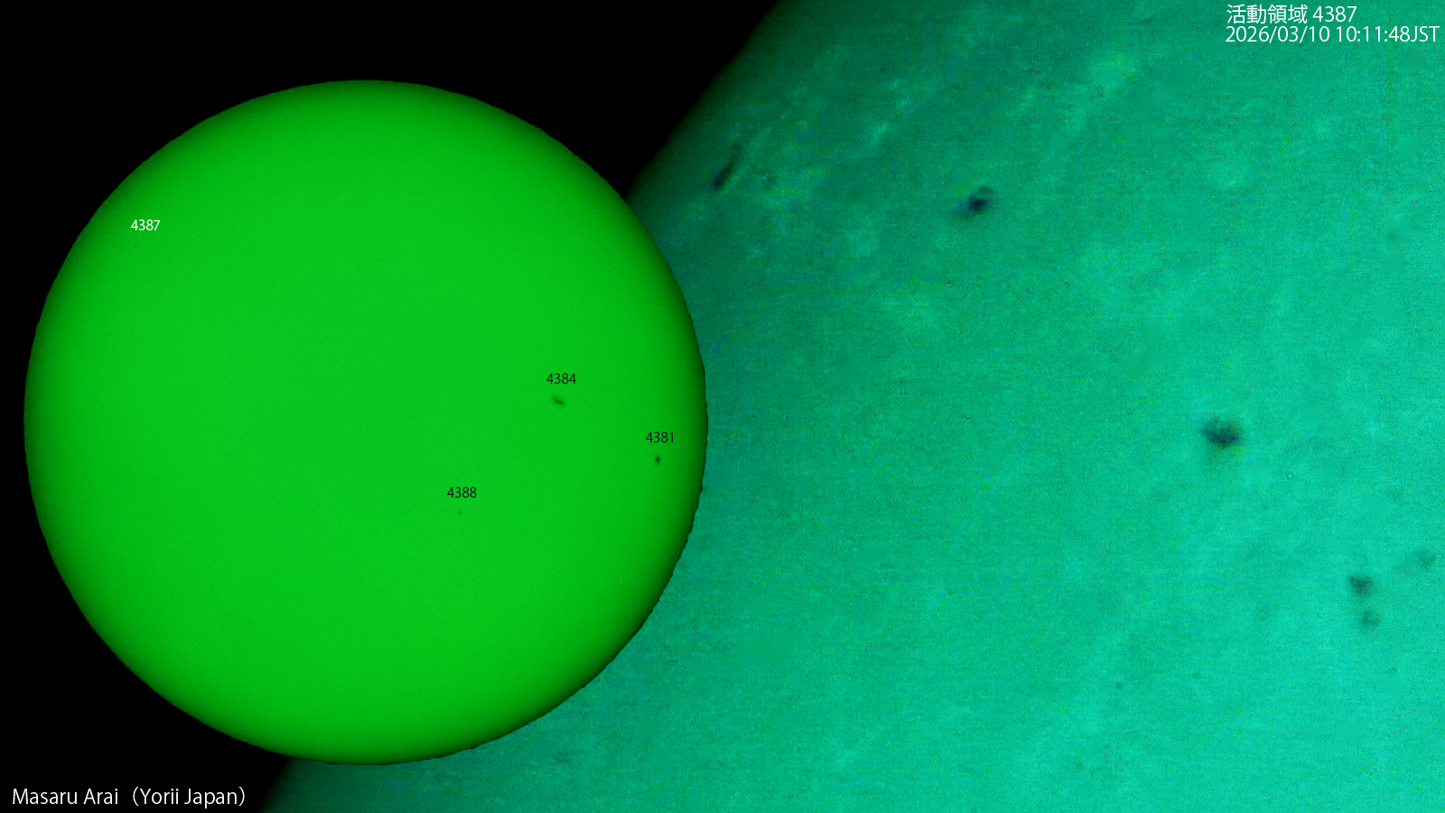 SE120L+DMC-GH1よる 4387( Dro/Dao ) です。 NICT情報:活動領域4387などでCクラスフレアが数回発生し、最大のものは、活動領域4387で10日5時38分JSTに発生したC7.8/SFフレアでした。