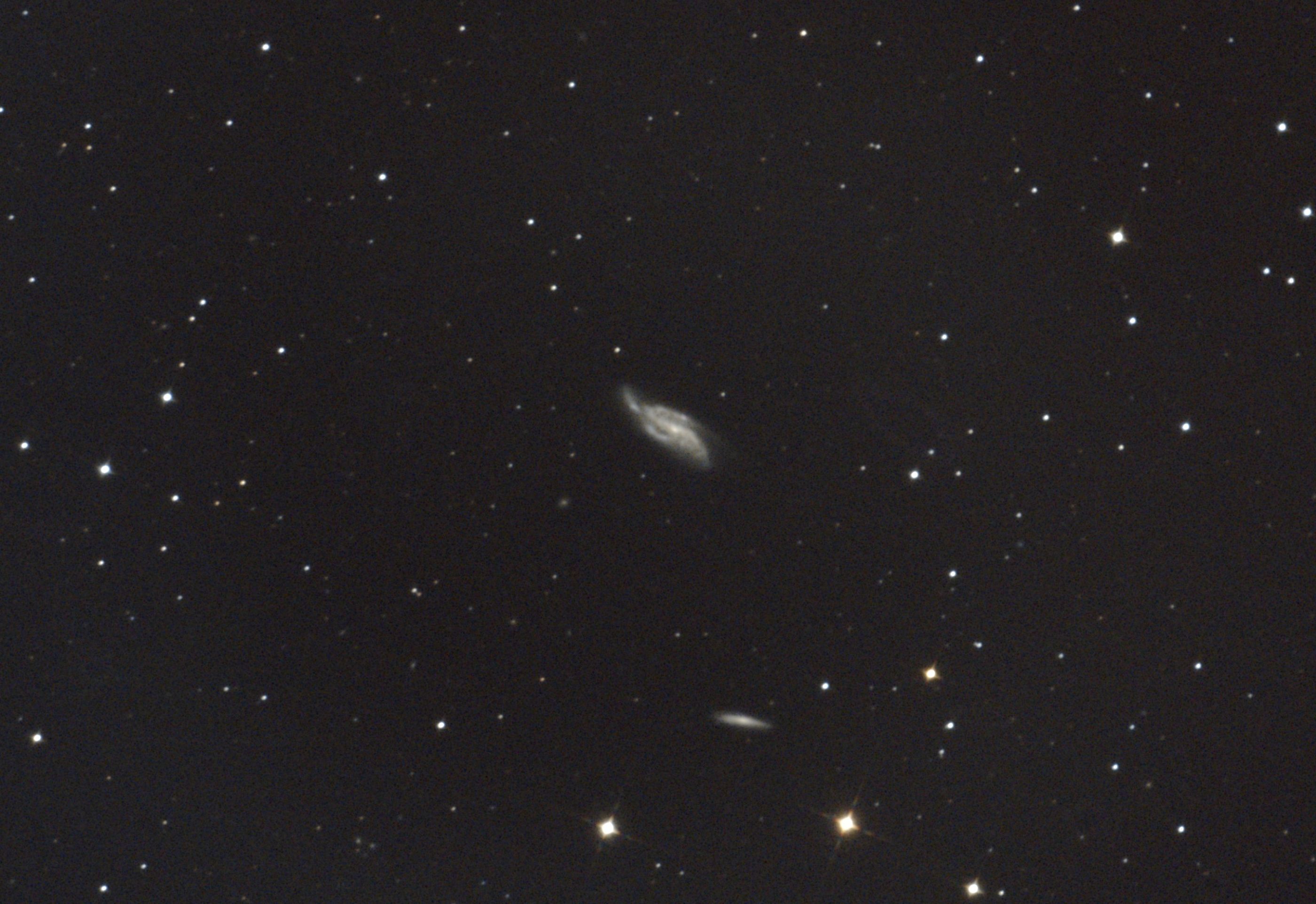 中央がNGC4088でその下がNGC4065です。 物理的に相互作用を及ぼしているペアの銀河のようです。