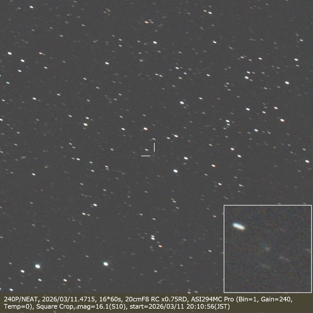 240P/NEAT, 2026/03/11.4715, 16*60s, 20cmF8 RC x0.75RD, ASI294MC Pro (Bin=1, Gain=240, Temp=0), Square Crop, mag=16.1(S10)