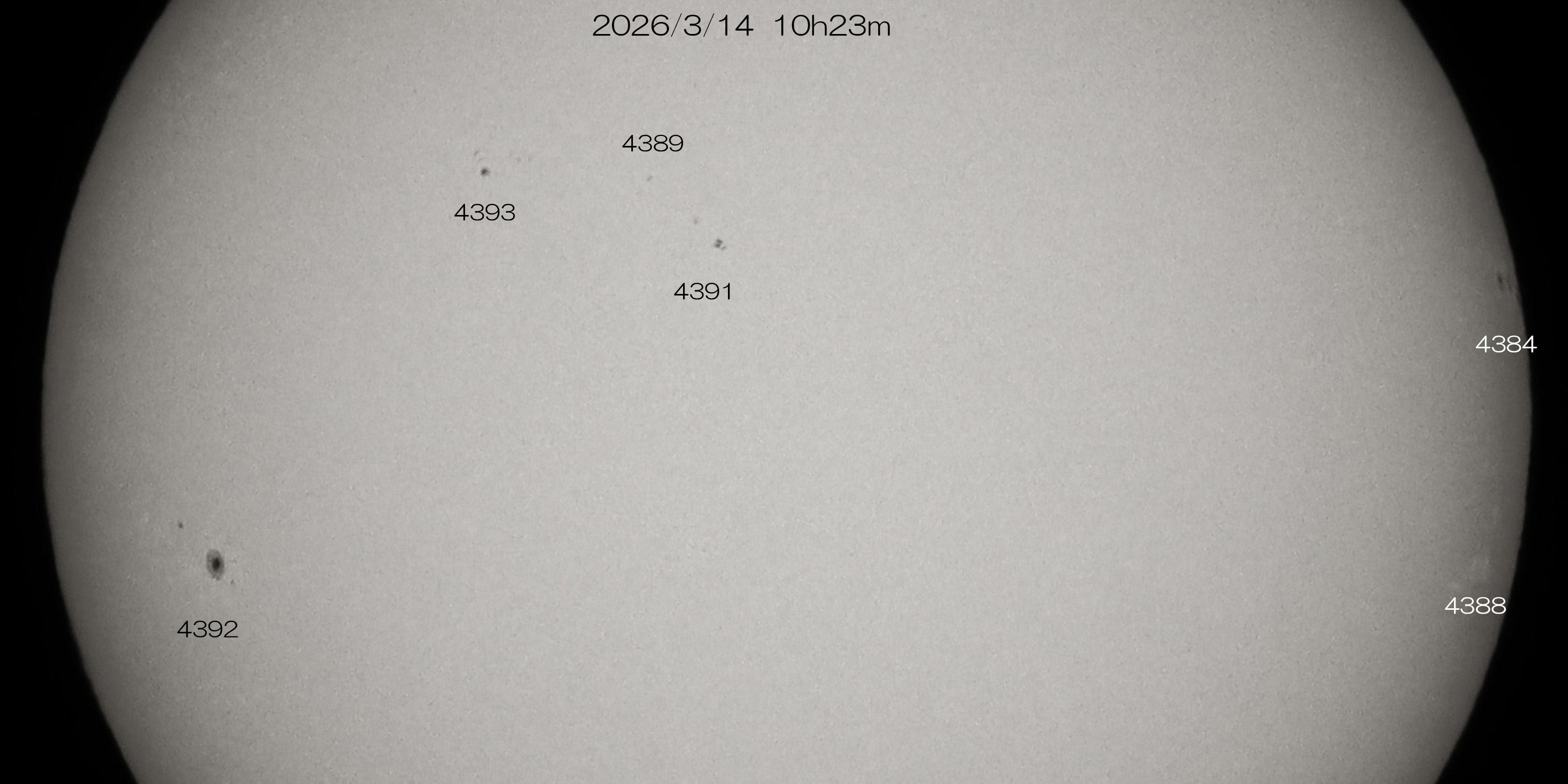 6つの黒点群がありますが、全体として静穏な太陽面という印象です。