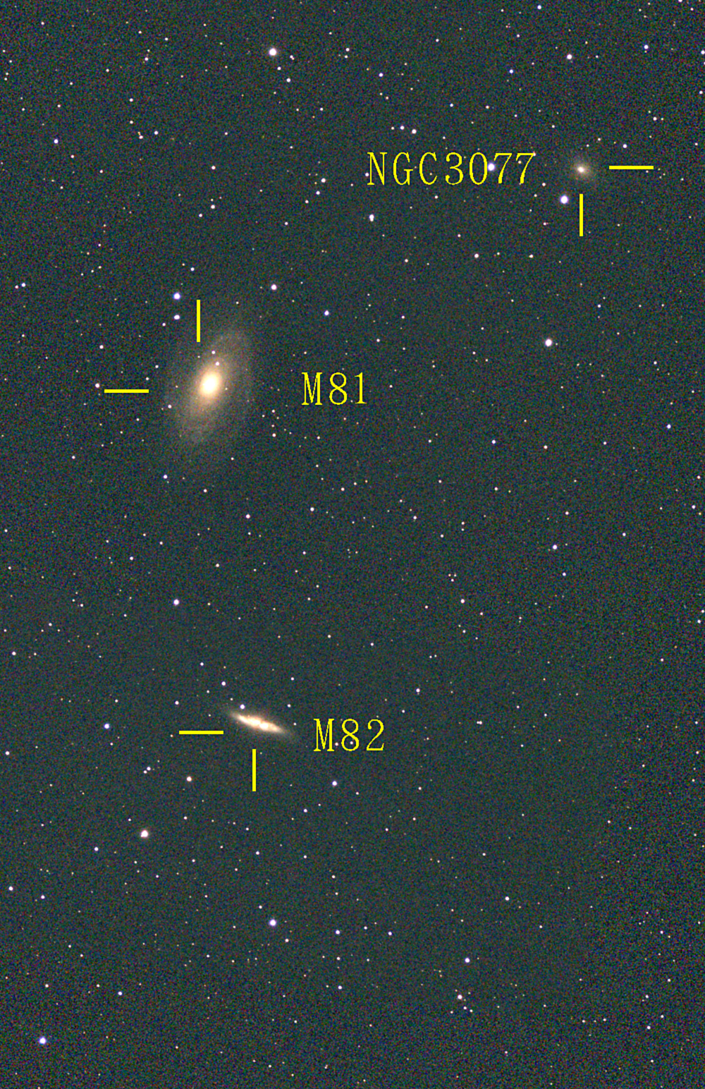 おおぐま座のメシエ天体です。 系外銀河のペア M81 (ボーデの銀河)と M82です。 光害の対策を適正に行えば都市部でも星空は綺麗に見えます。 ※光害とは(環境省)https://www.env.go.jp/air/life/hoshizorakansatsu/observe-5.html 上方に漏れている光や過剰な光が夜空を明るく照らして星を見えにくくしているだけです。 過剰な照明は動植物の生態系に悪影響をおよぼします。 星空は環境のバロメーターです。 ※光害対策ガイドライン(令和3年3月改訂版) https://www.env.go.jp/content/900517233.pdf