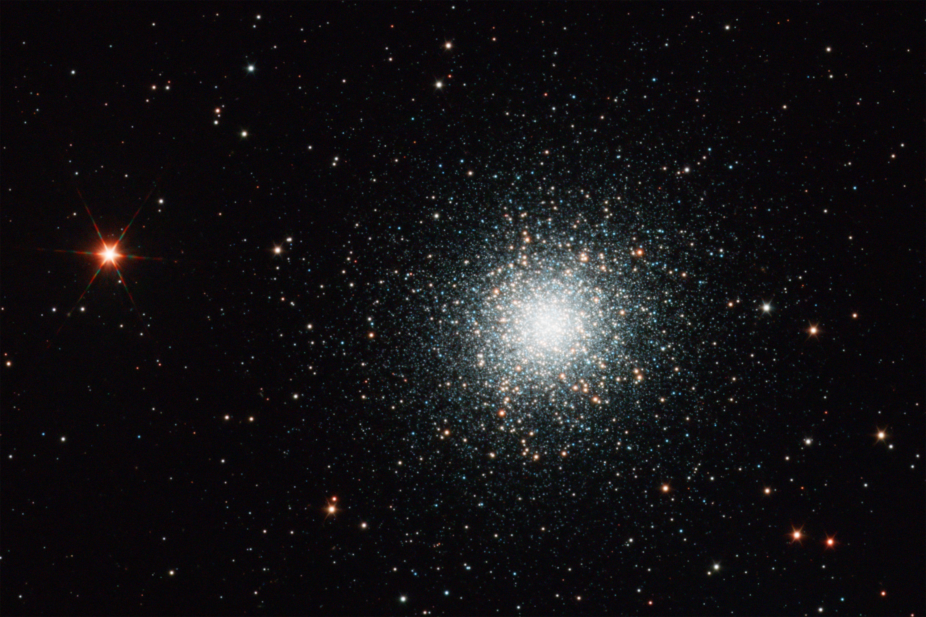 左側に光る赤い星はHD150998で、地球から約1,500光年離れたK型主系列星で、太陽より小さく温度が低くて長寿命な星らしいです。 M13は距離約2万5千光年なので、奥行きを感じますね。 ・M13はいつものゲイン300だと中心が白飛びしてしまうため、ゲイン0で撮影しています。 ・またAPP(Astro Pixel Processor)でスタックしたらヘンにピンクな星がたくさん出来てしまったため、WBPPでスタックし直しています。 ・BXTは球状星団には効き過ぎてツブツブが気持ち悪い感じになるので、「Correct Only」で収差補正のみに使用しています。
