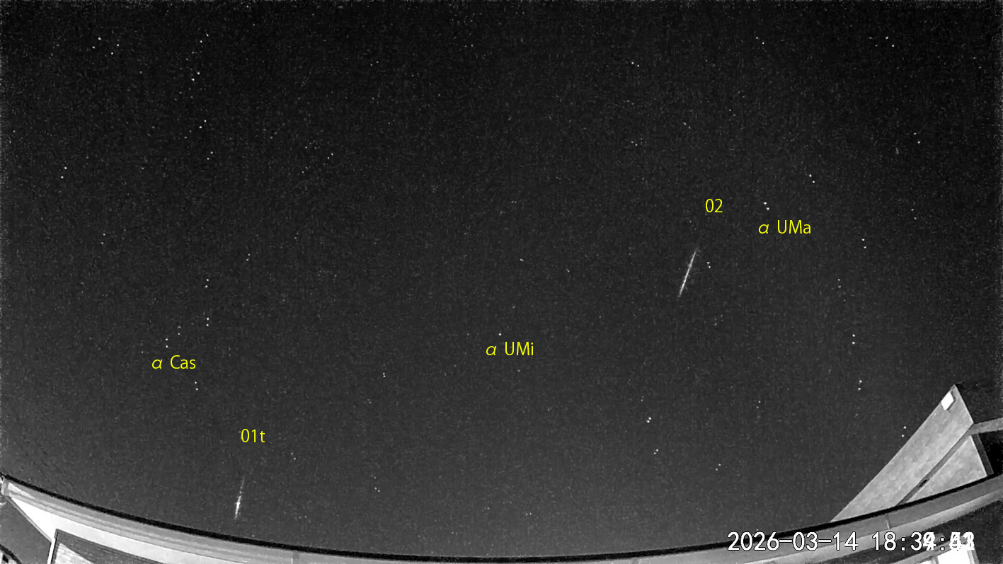 18:34から約0.1時間の2コマを処理しました。19時過ぎから曇りとなりました。 出現した順に数字と記号を始点付近に記入。tは痕traceあり。