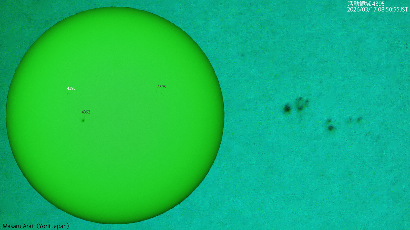 SE120L+DMC-GH1よる 4395( Csi/Csi ) です。 NICT情報:活動領域4392で、17日18時4分JSTにM1.3/SNフレアが発生しました。