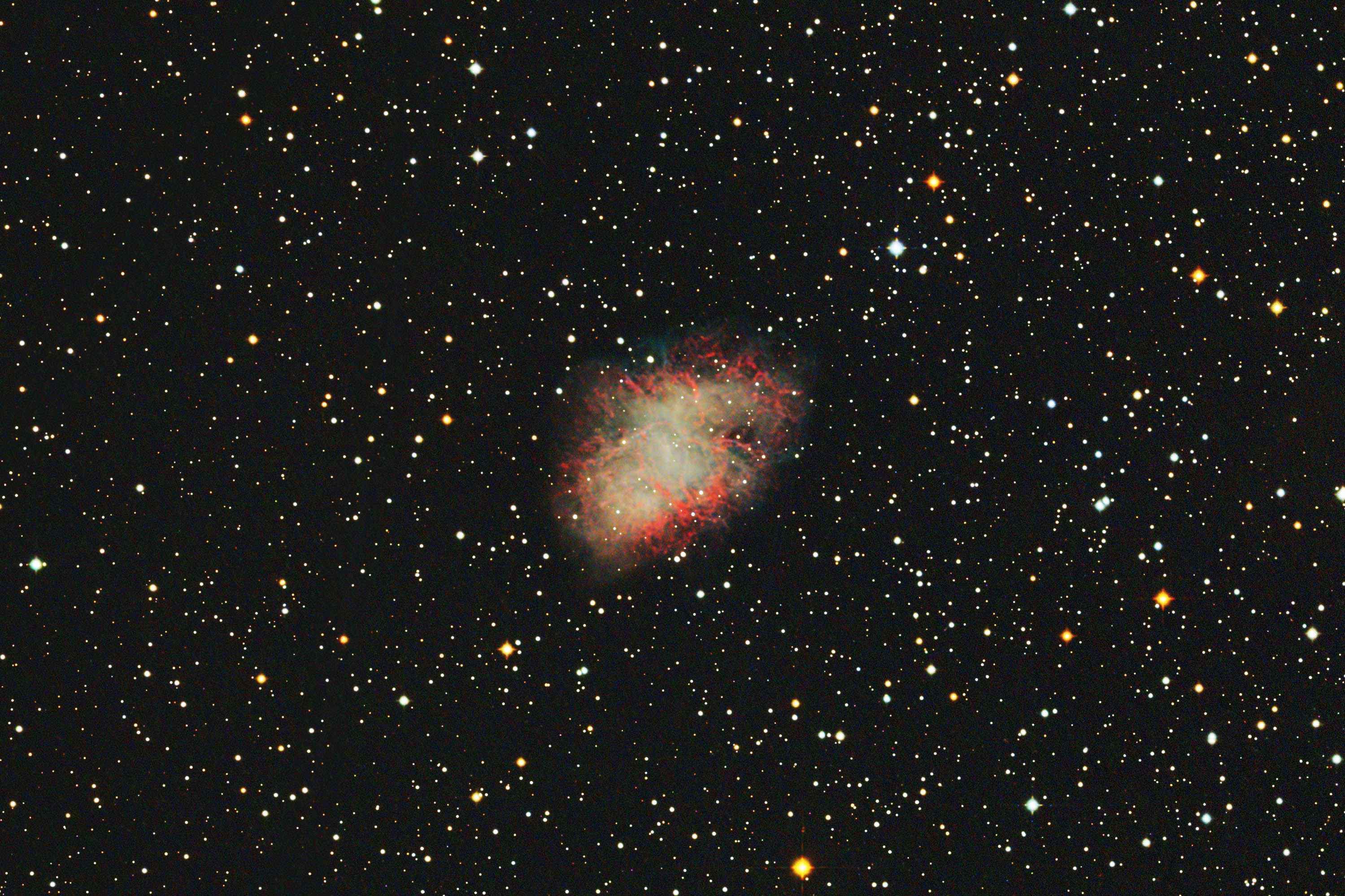 目の治療でしばらくお休みしていたため約3か月ぶりの撮影です。 PixInsightのSPCCによる色合わせでフィルターなしのブロードバンド撮影でも星雲内の赤と青のフィラメントが良く表現できています。