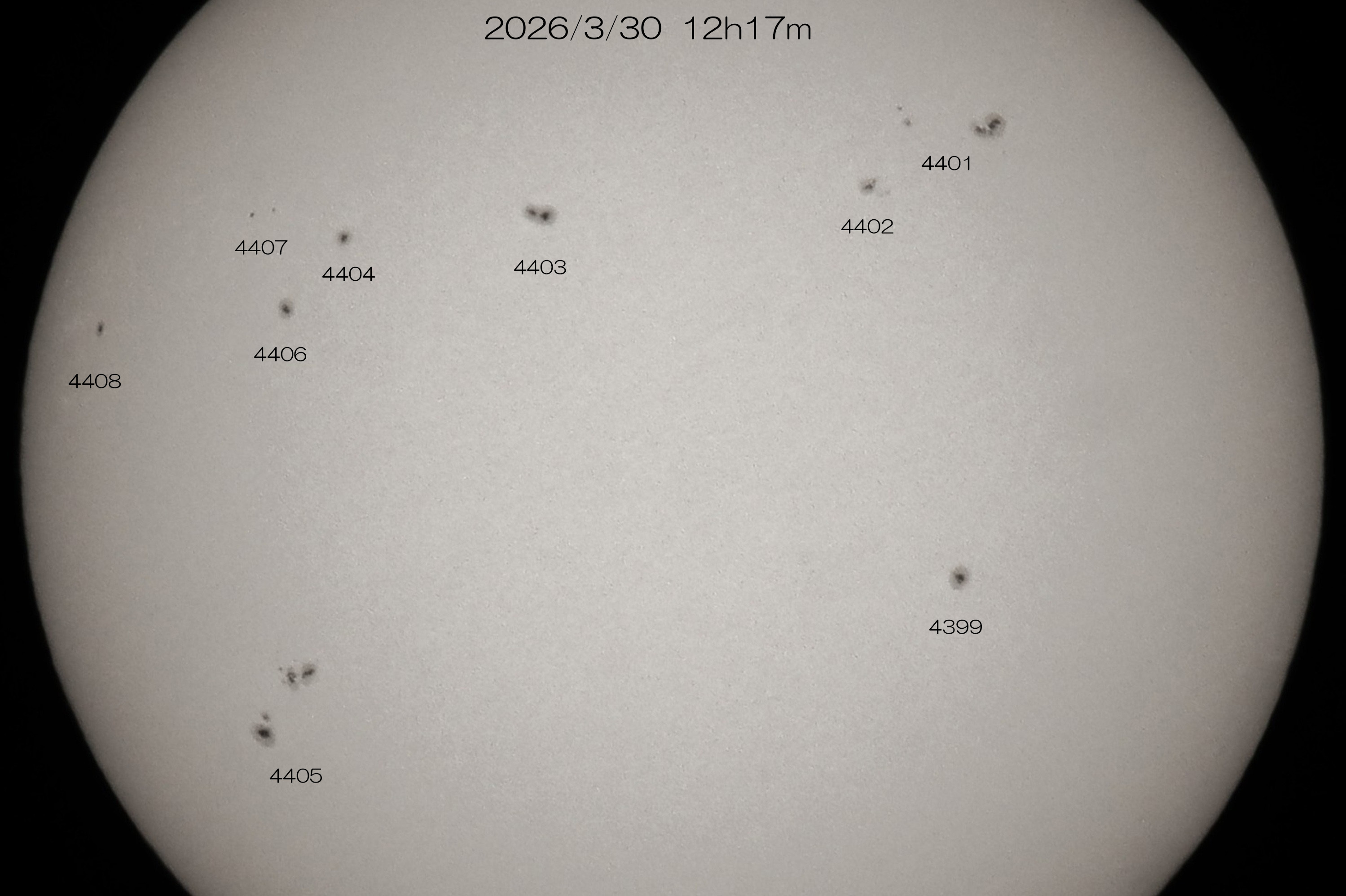 南半球の4405群が発達してきました。今日は昼頃に急に晴れ間広がって撮影できました。