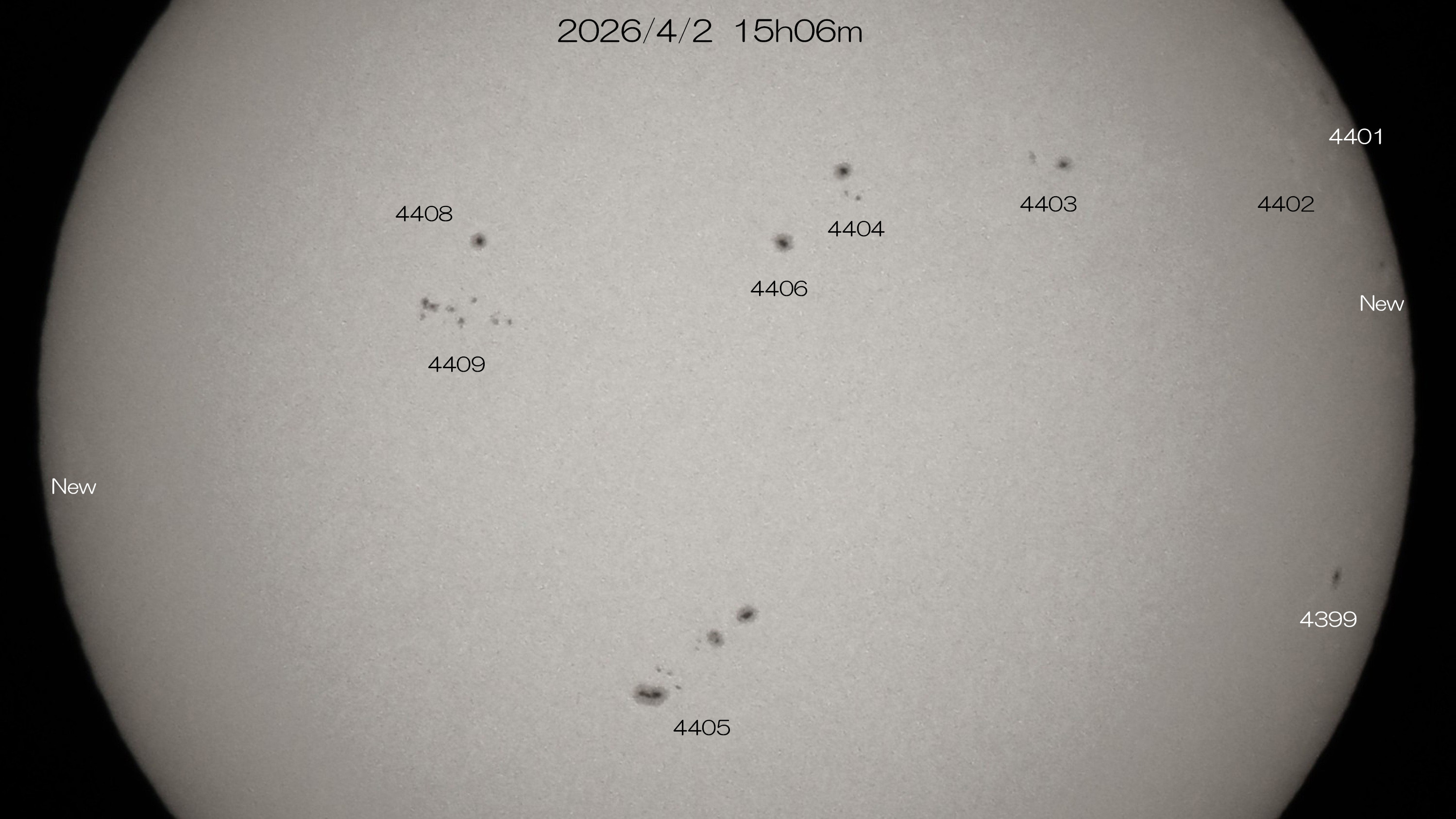 11もの黒点群が出ていて、にぎやかな太陽面になっています。今日は午後のこの時間になって急速に晴れ間が広がってきました。