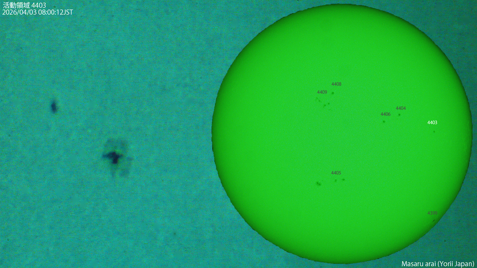 SE120L+DMC-GH1よる 4403 ( Cso/Cso ) です。 NICT情報:活動領域4409でMクラスフレアが数回発生し、最大のものは、3日16時56分JSTに発生したM1.3フレアでした。