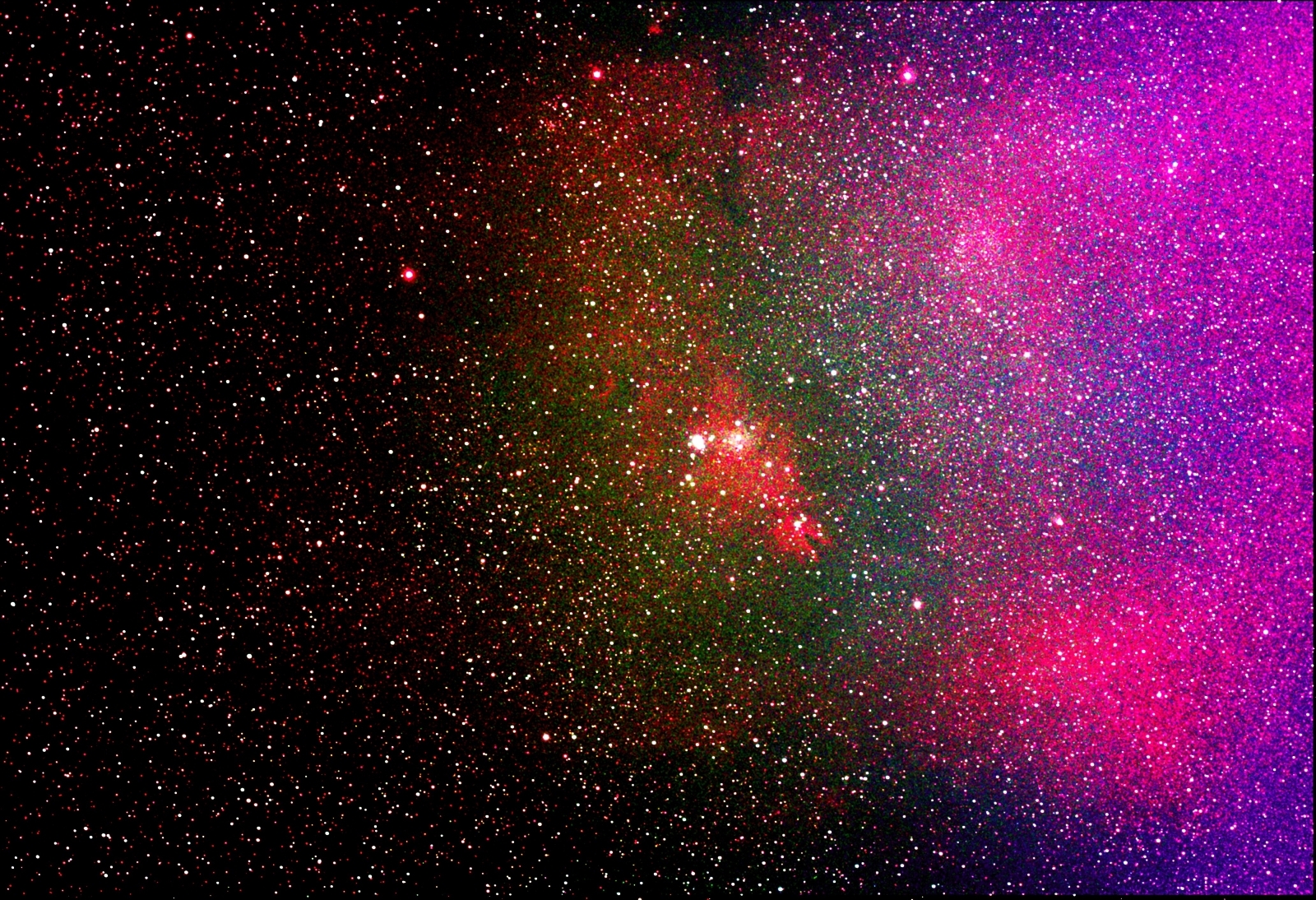 クリスマス星団、バラ星雲からかもめ星雲付近の星空