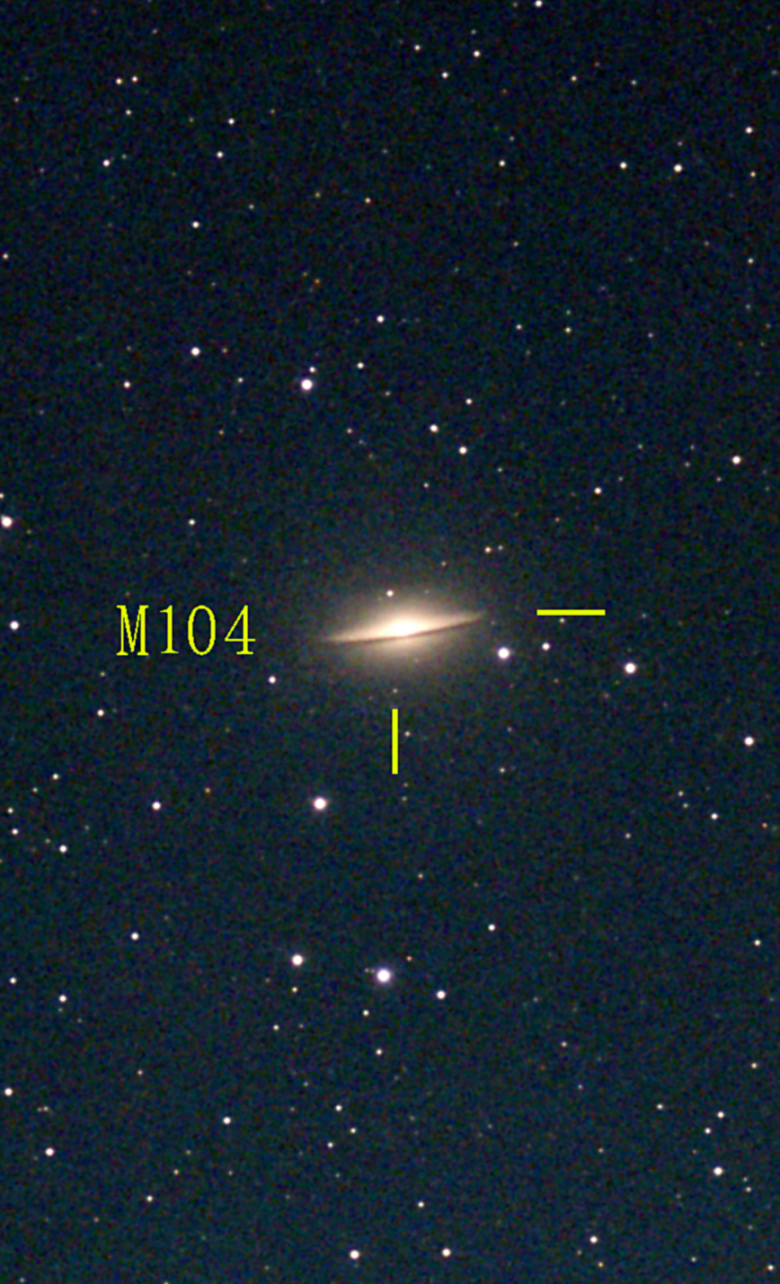 おとめ座のメシエ天体です。 M104 (ソンブレロ銀河)です。 光害の対策を適正に行えば都市部でも星空は綺麗に見えます。 ※光害とは(環境省)https://www.env.go.jp/air/life/hoshizorakansatsu/observe-5.html 上方に漏れている光や過剰な光が夜空を明るく照らして星を見えにくくしているだけです。 過剰な照明は動植物の生態系に悪影響をおよぼします。 星空は環境のバロメーターです。 ※光害対策ガイドライン(令和3年3月改訂版) https://www.env.go.jp/content/900517233.pdf