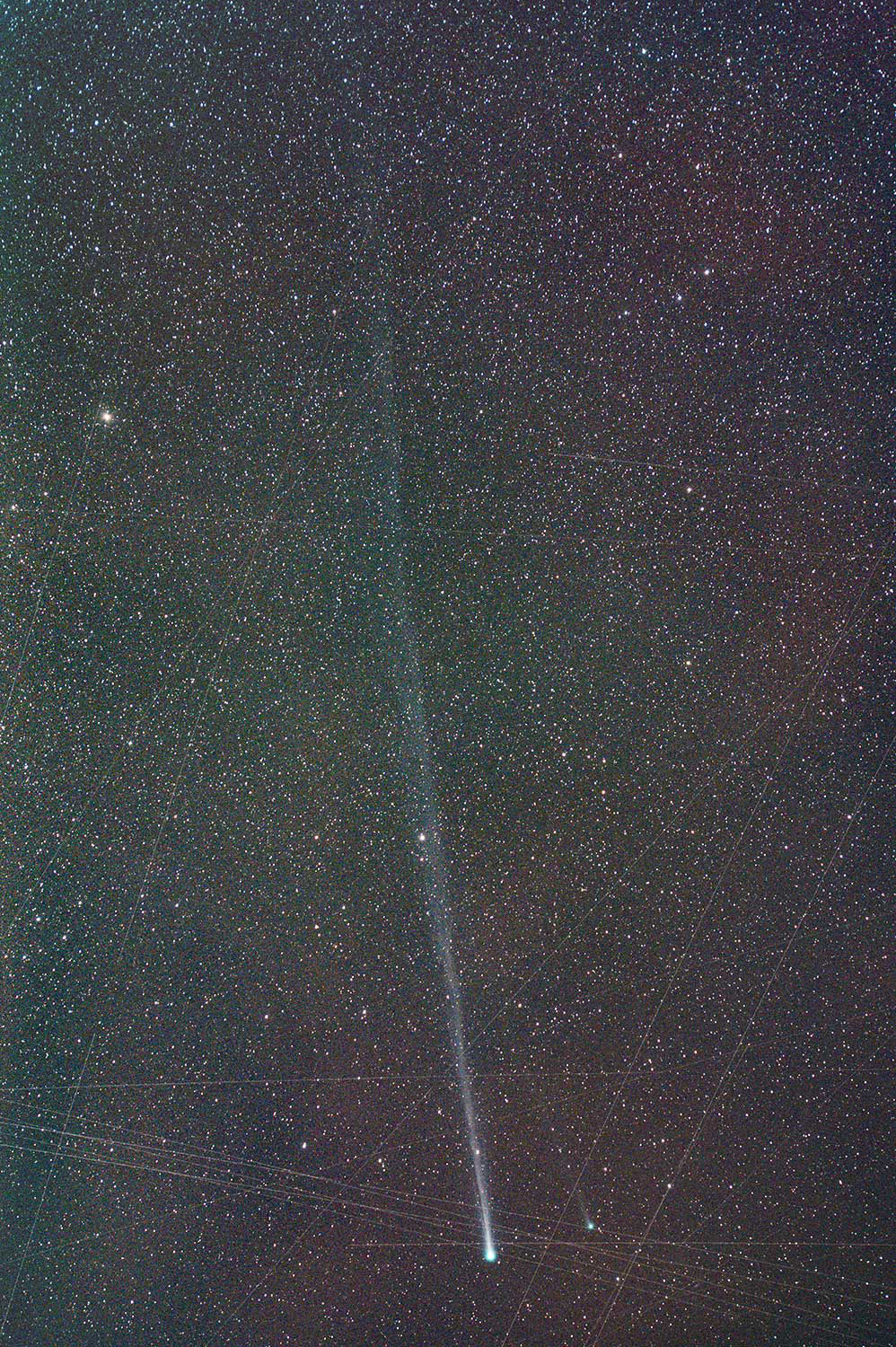 熊本は雲が張ったので、GPVを頼りに大分県竹田市運動公園駐車場に遠征して撮影しました。30s10枚から強調しています。尾は画像の端まで約9度写っています。→すみません、構図を修正する前のコマを一緒にコンポジットしていました。やり直します。失礼しました。