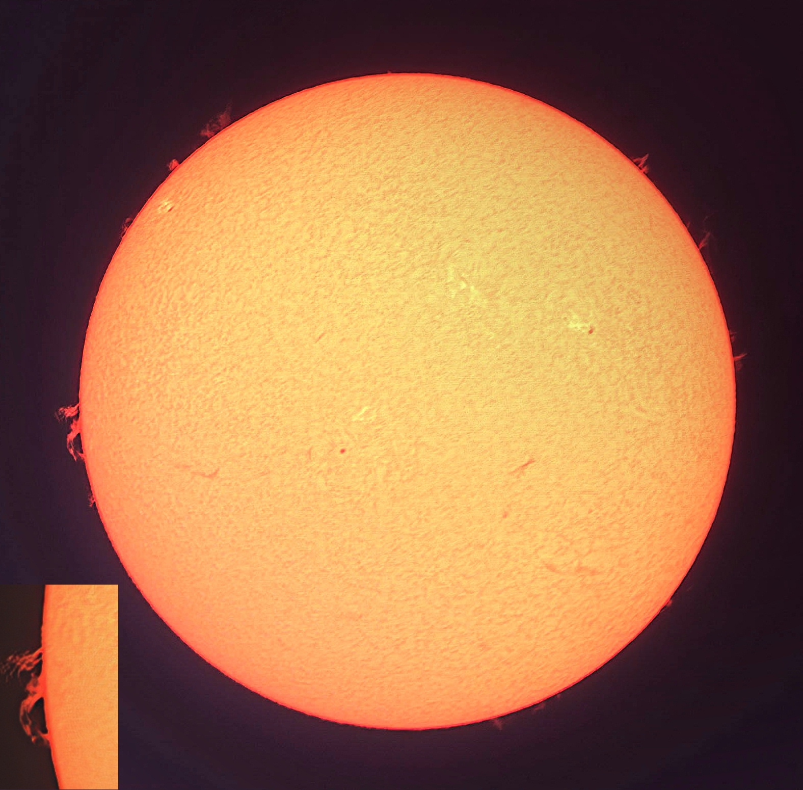 4/13昼の太陽(Hα中心付近・カラーにて)