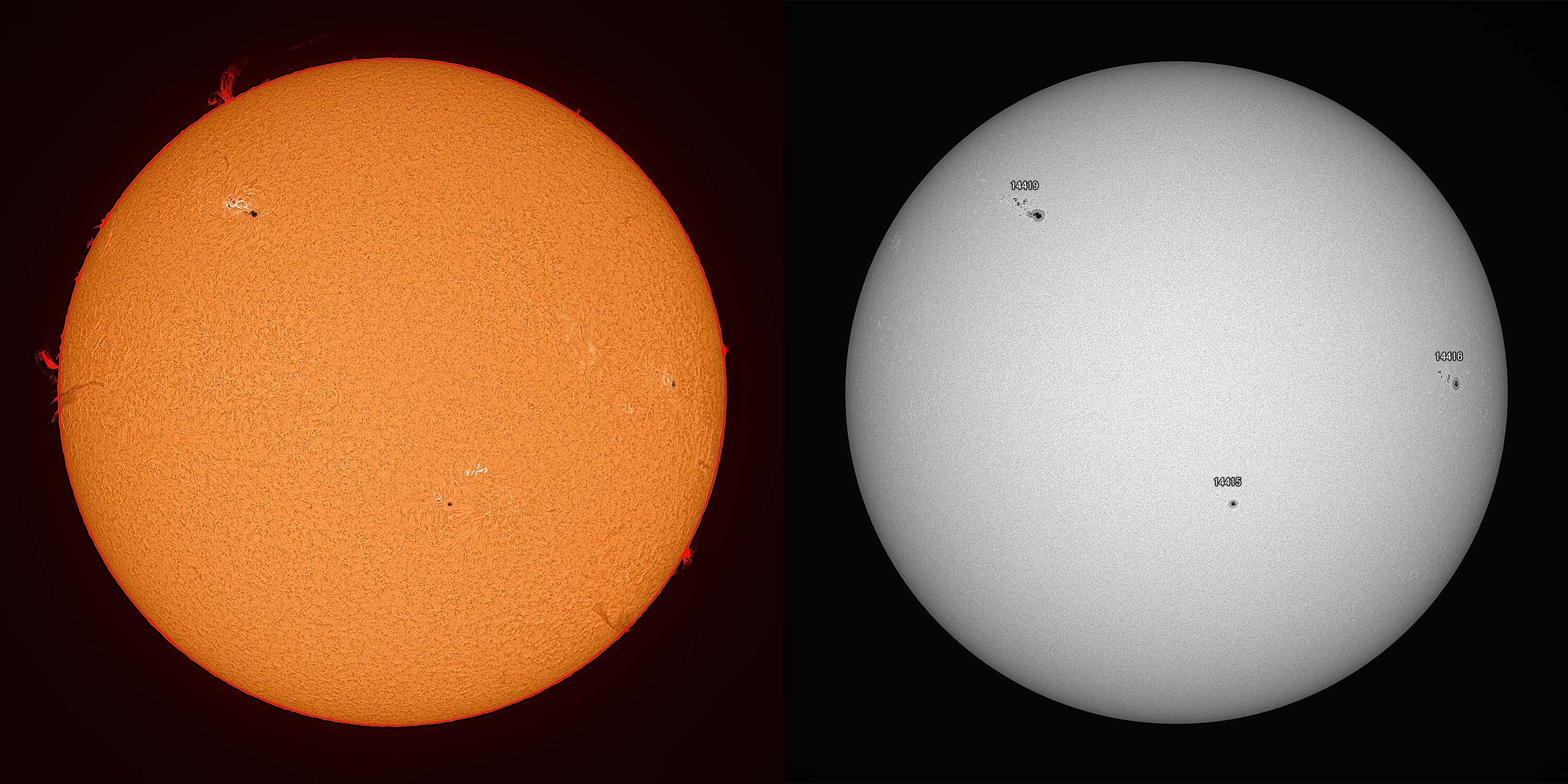 光球面:FireCapture、ROI 3600x2400、Gain 100、1.65msec x1000、撮影時間 31秒/プロミネンス:FireCapture、ROI 3600x2400、Gain 300、1.65msec x1000、撮影時間 31秒