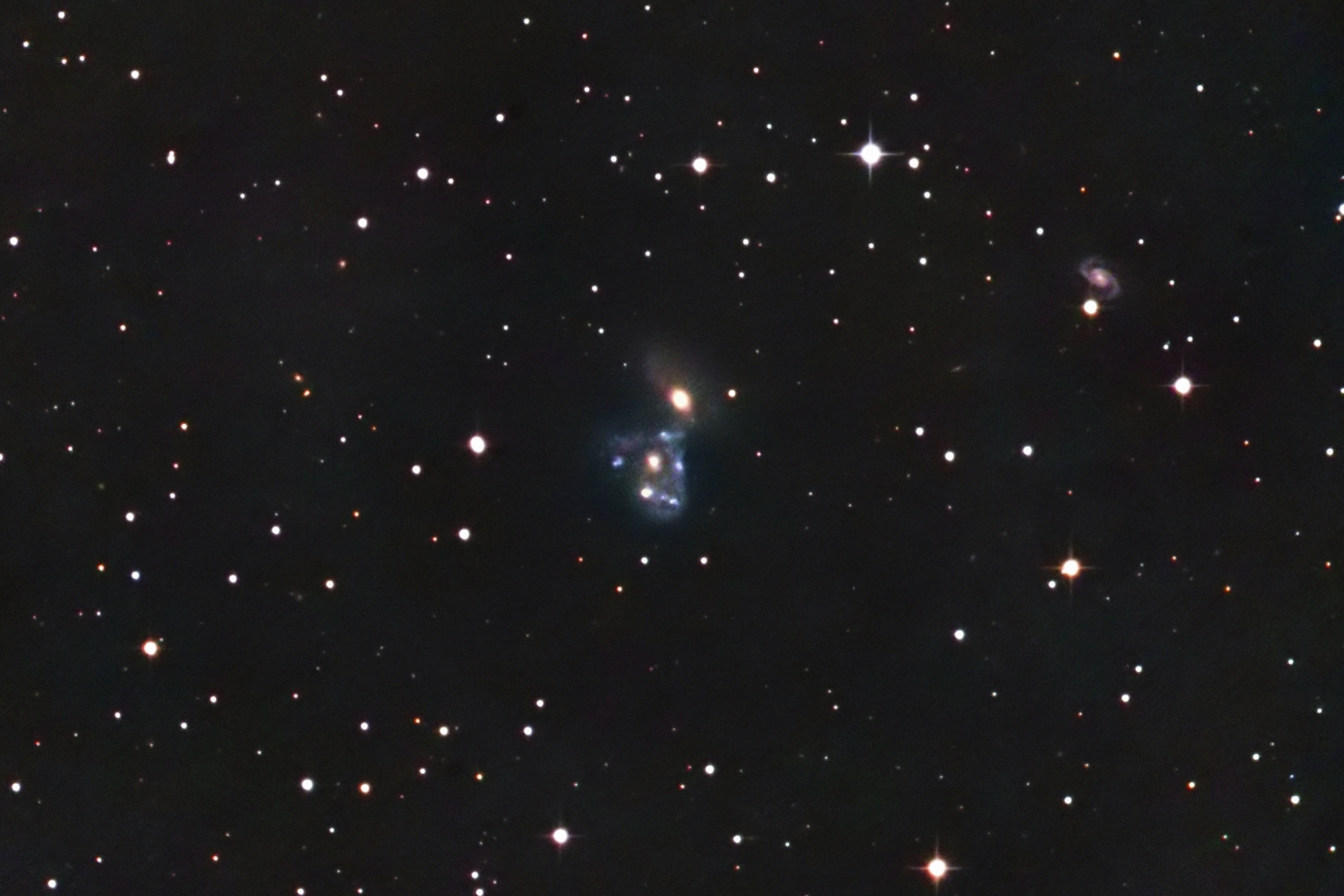 やまねこ座の相互作用銀河で,NGC2445の青い三角形は印象的です。