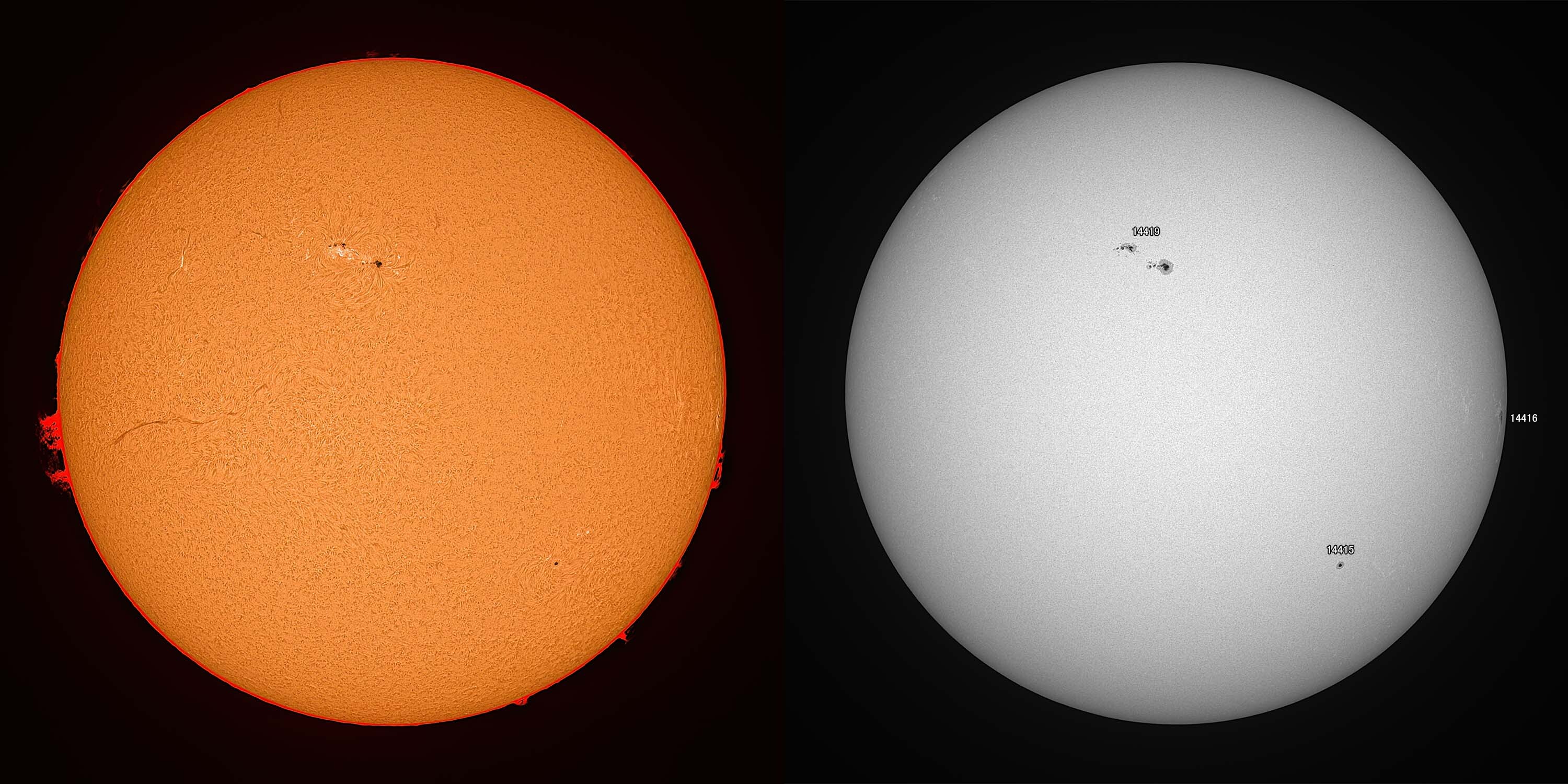 光球面:FireCapture、ROI 3600x2400、Gain 100、2.3msec x1000、撮影時間 31秒/プロミネンス:FireCapture、ROI 3600x2400、Gain 300、2.3msec x1000、撮影時間 31秒