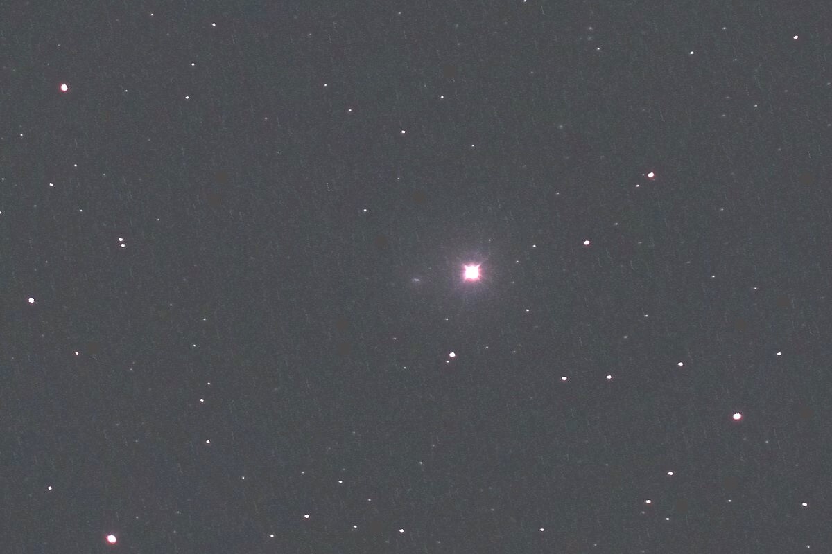 「おとめ座」110番星の西北西1.6度付近、8等星(画面中央付近の輝星)の近くにいました。この彗星を撮影したのは2025年12月30日以来です。 明るさは13等級くらいでしょうか。今回初めてComet BPフィルターを使用しました。