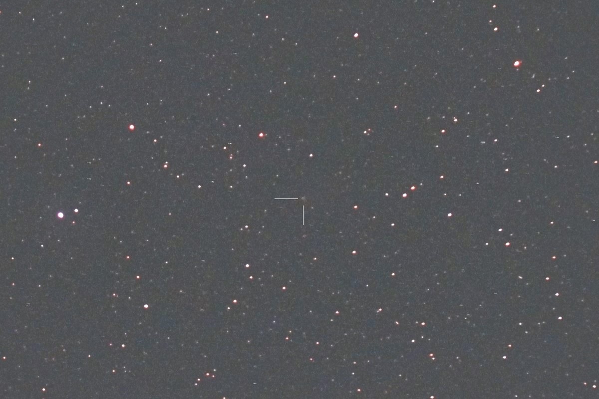 「へび座」ν星(ニュー)の南西1.2度「へびつかい座」との境界付近にいました。 明るさは14等級半ばくらいでしょうか。