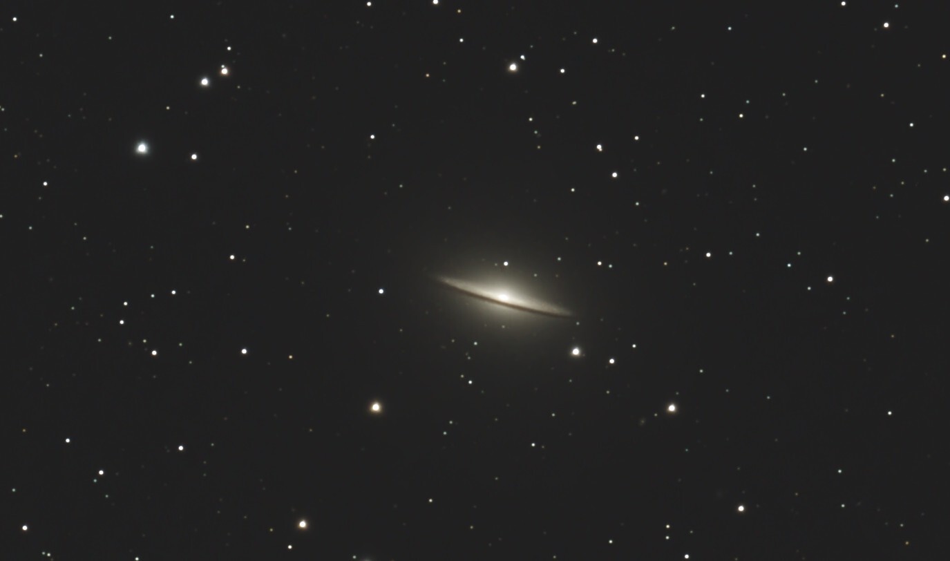 新型FSQで撮影しました。フラットは使用していません。撮影日は快晴でしたがなんとなく透明度が悪い感じでした。 M104をトリミングしてみました。模様なのかムラなのかなんとなく何か写っています。 8cmでこのくらい解像していれば良好なのでは?と思います