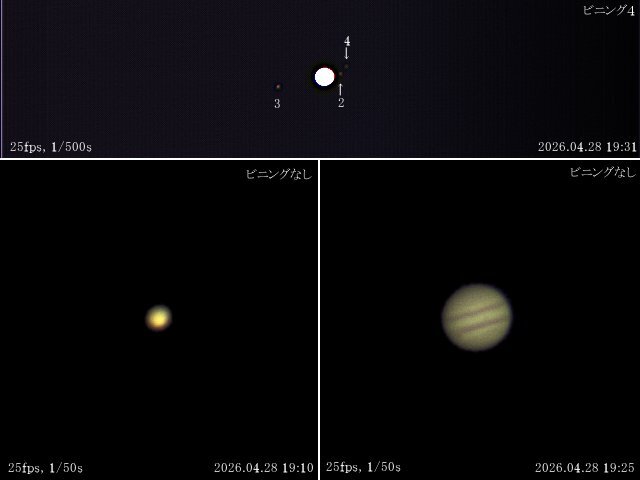金星は今シーズン初撮影です。イオは木星の裏側に回り込んでいて映っていません。