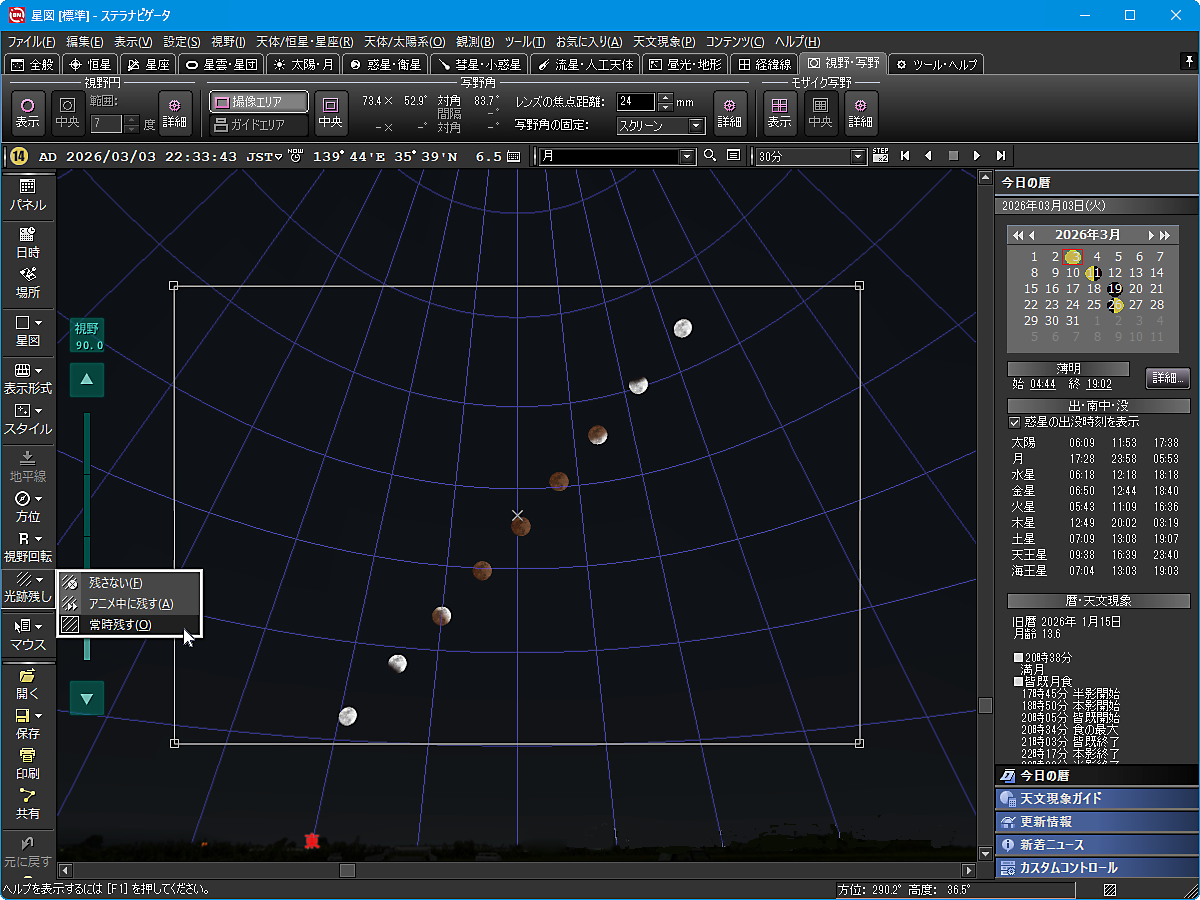 3月3日の夕刻から深夜にかけて、日本全国で「皆既月食」が見られます。