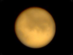 一枚撮りではちょっと見劣りしますが、眼視に近いイメージです。(コントラストは強調)透明度、シーイングともまずますでしたが、眼視ではずいぶんコントラストが低く感じました。前回大接近に比べると大分小さく感じます。