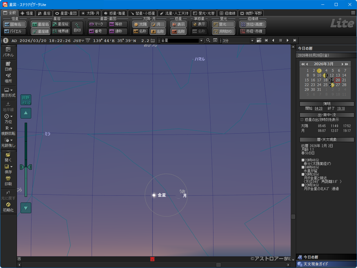 | 8月15日 | 東方最大離角 | 45.9° |